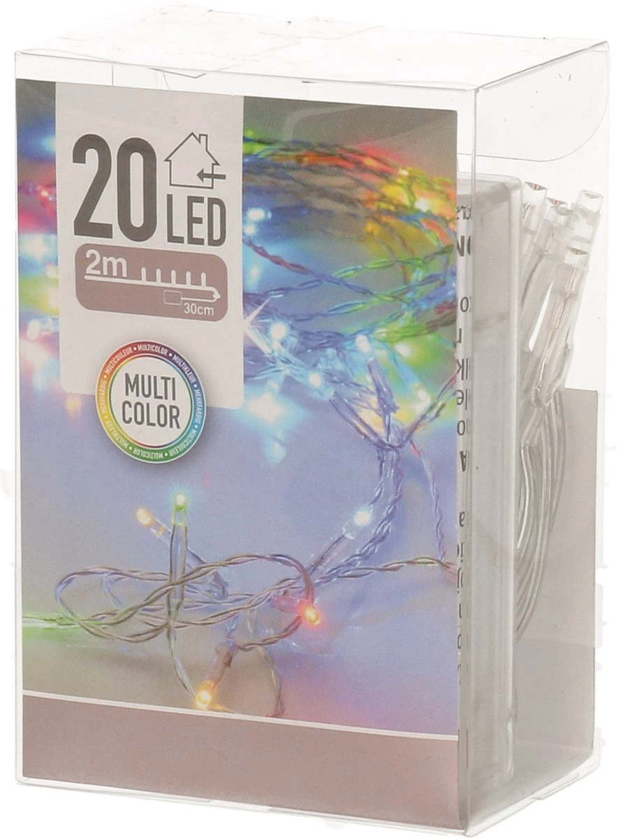 2x lumières de Noël sur batterie de couleur 20 lumières. Cordons lumineux LED de Noël de 2 mètres de long avec 20 lumières et un cordon de 30 cm de long. Chaque cordon mesure 230 cm de long au total. Il y a environ 10 cm d’espace entre chaque lampe. 6 piles AA exclusives (3 V). L’éclairage est adapté à une utilisation en intérieur. Vous recevrez 2 cordes légères.