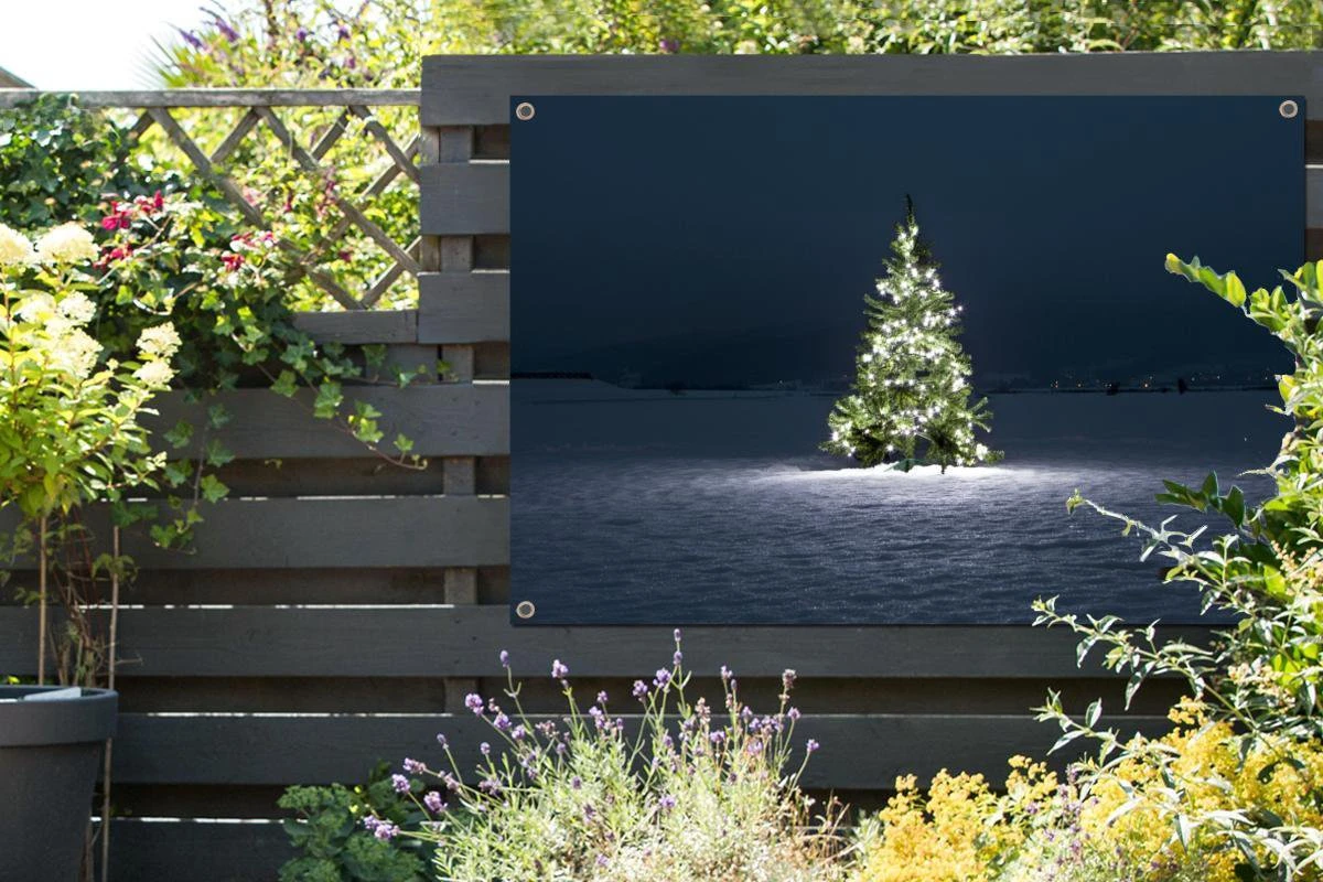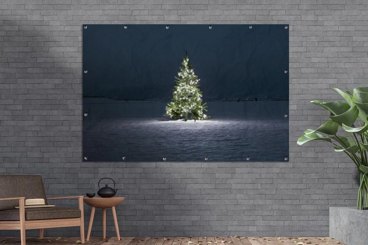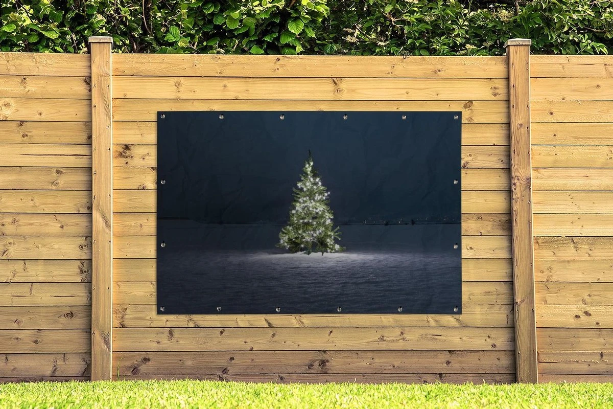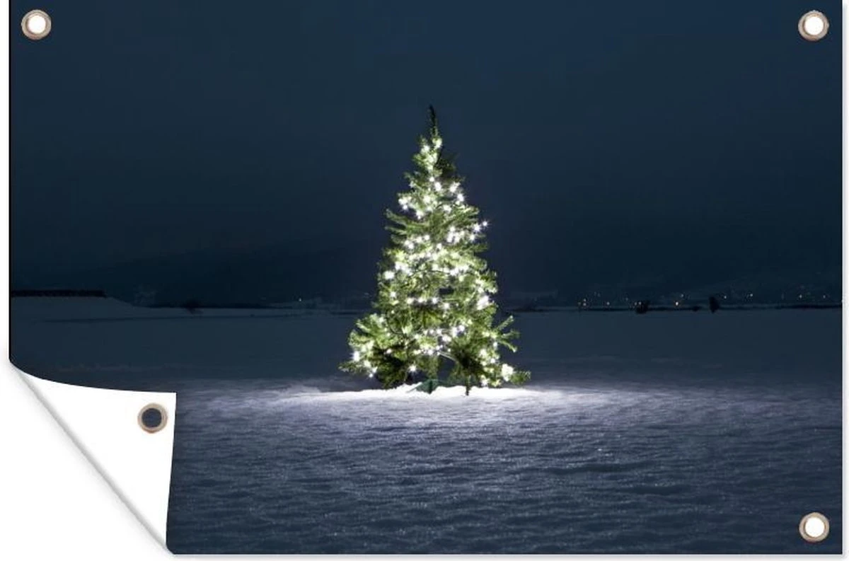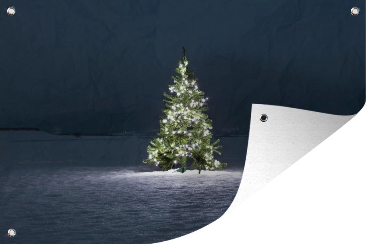 Affiche De Jardin Sapin De Noël Lumineux Sur Sol Enneigé 180×120 Cm – Toile De Jardin / Toile D’extérieur / Peintures D’extérieur (décoration De Jardin) XXL / Grand Format!