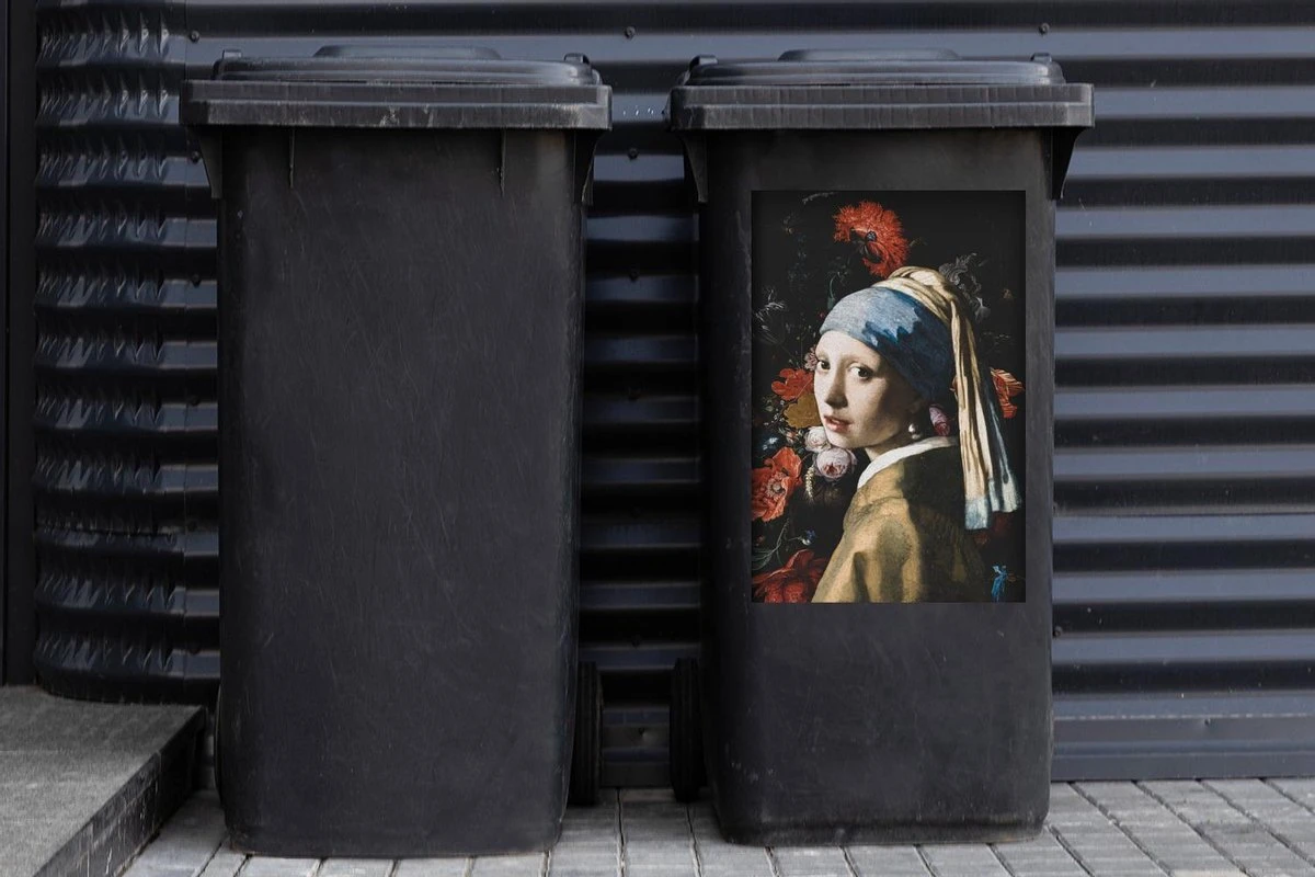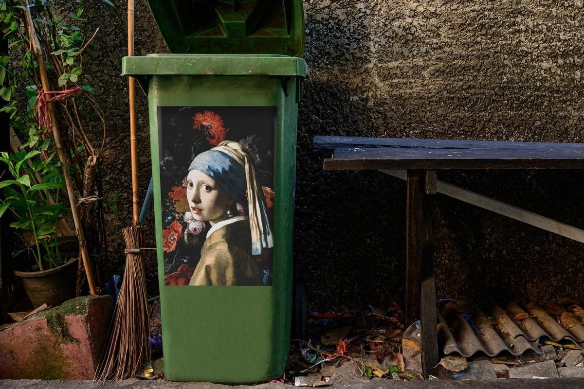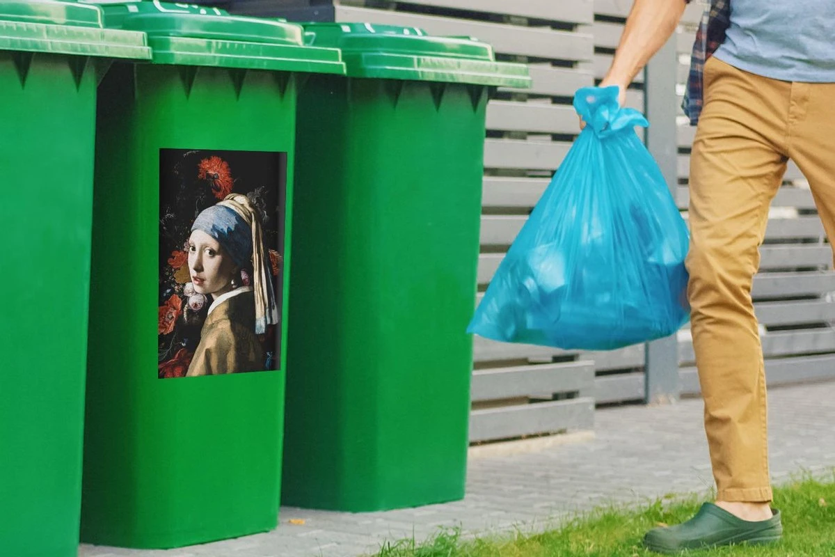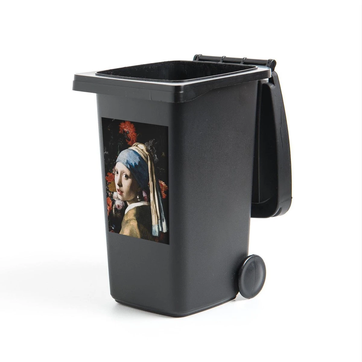 Autocollant De Conteneur Vieux MaîtresIllustrations De Noël – Fille Avec Une Boucle D’oreille De Perle Par Le Vieux Maître Johannes Vermeer Avec Filtre D’ombre