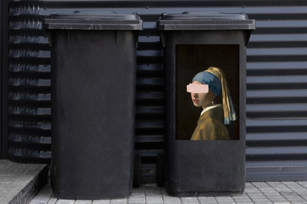 Autocollant De Conteneur Vieux MaîtresIllustrations De Noël – Fille Avec Une Boucle D’oreille De Perle Par Le Vieux Maître Johannes Vermeer Avec Un Coup De Pinceau Pastel