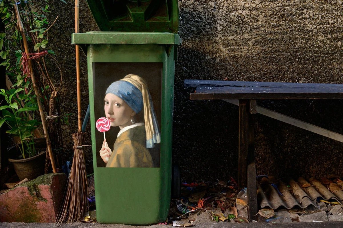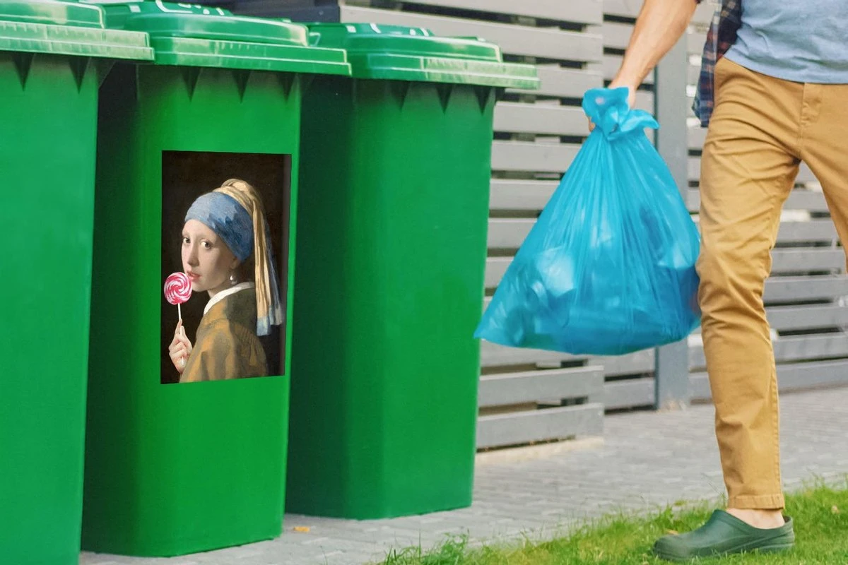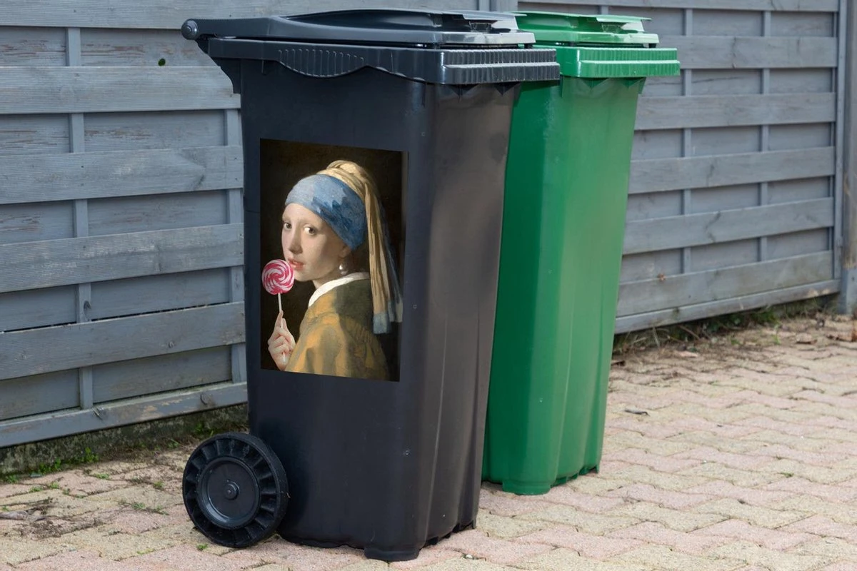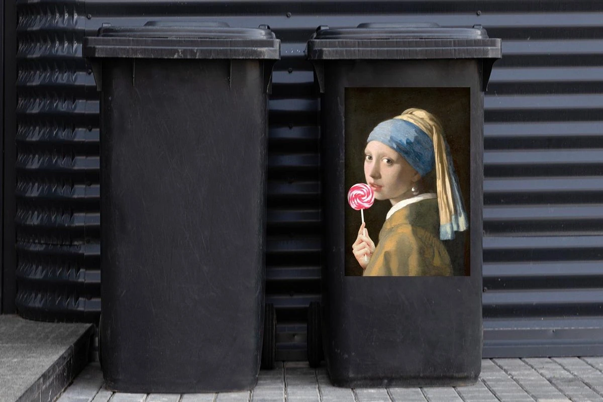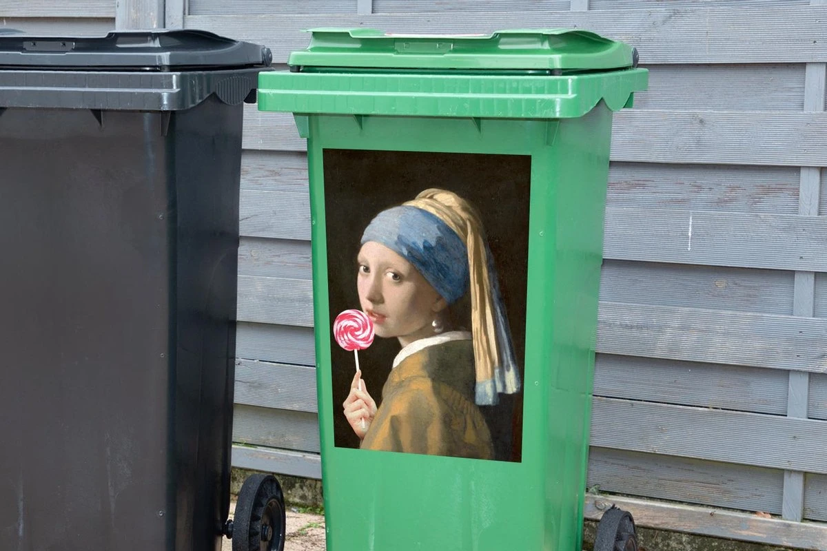 Autocollant De Conteneur Vieux MaîtresIllustrations De Noël – Fille Avec Une Boucle D’oreille De Perle Par Le Vieux Maître Johannes Vermeer Avec Une Sucette Rouge Et Blanche