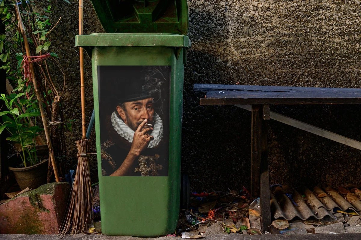 Autocollant De Conteneur Vieux MaîtresIllustrations De Noël – Guillaume D’ Oranje Par Old Master Adriaen Thomasz Fume Une Cigarette