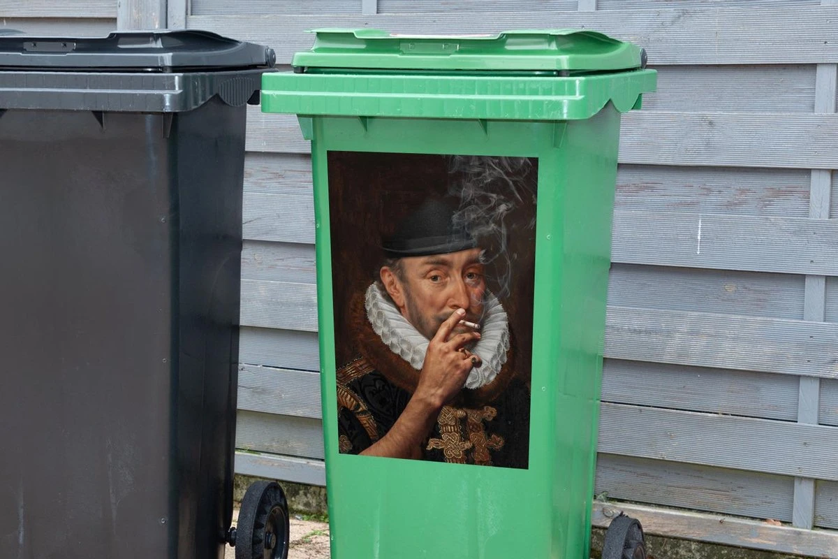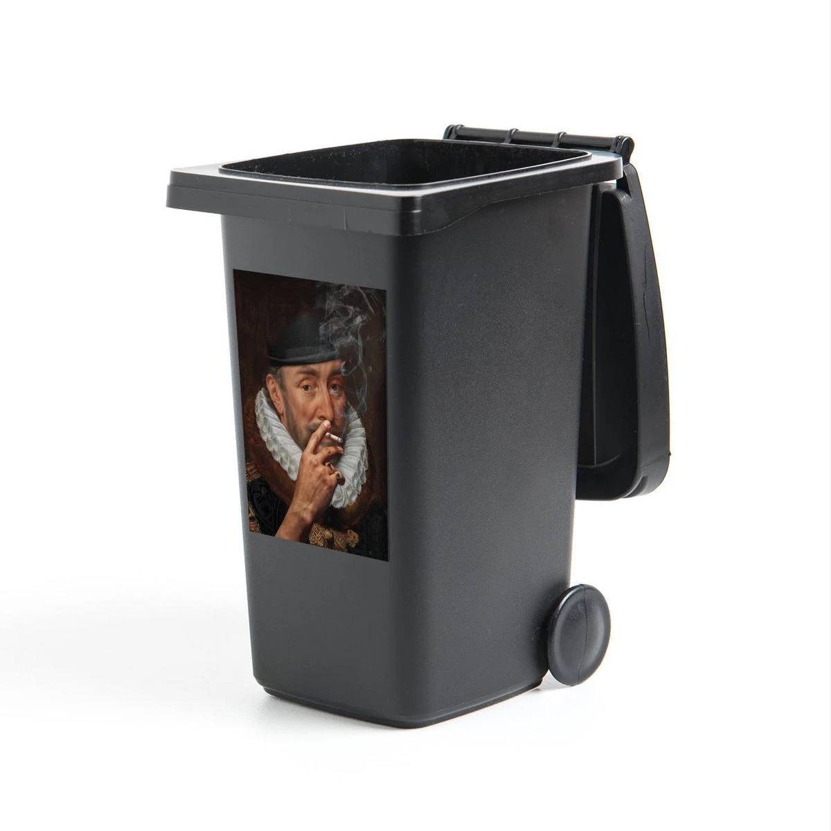 Autocollant De Conteneur Vieux MaîtresIllustrations De Noël – Guillaume D’ Oranje Par Old Master Adriaen Thomasz Porte Un Chapeau Melon Et Fume Une Cigarette