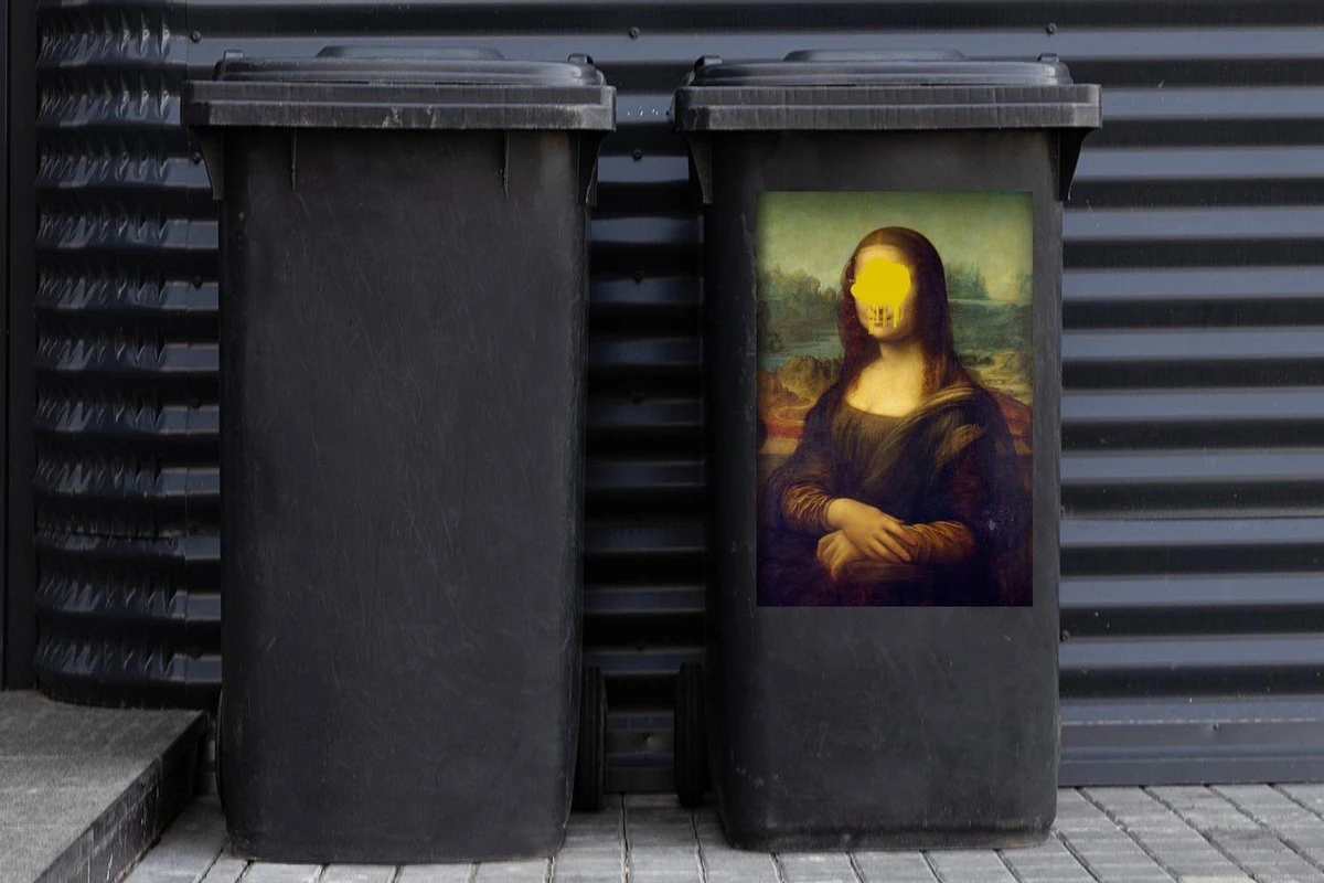Autocollant De Conteneur Vieux MaîtresIllustrations De Noël – Mona Lina Du Vieux Maître Leonardo De Vinci Avec Une Goutte De Peinture Jaune