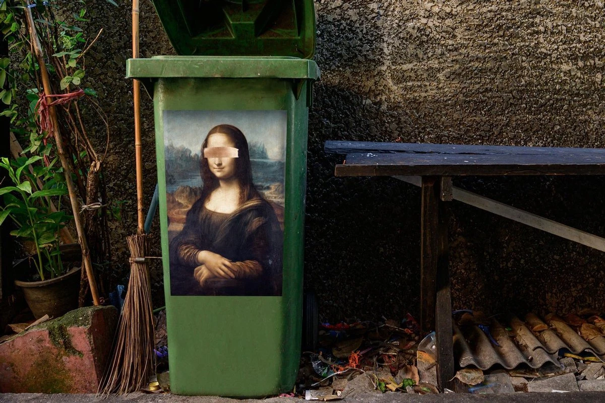 Autocollant De Conteneur Vieux MaîtresIllustrations De Noël – Mona Lisa Par Le Vieux Maître Leonardo De Vinci Avec Coup De Pinceau En Bronze