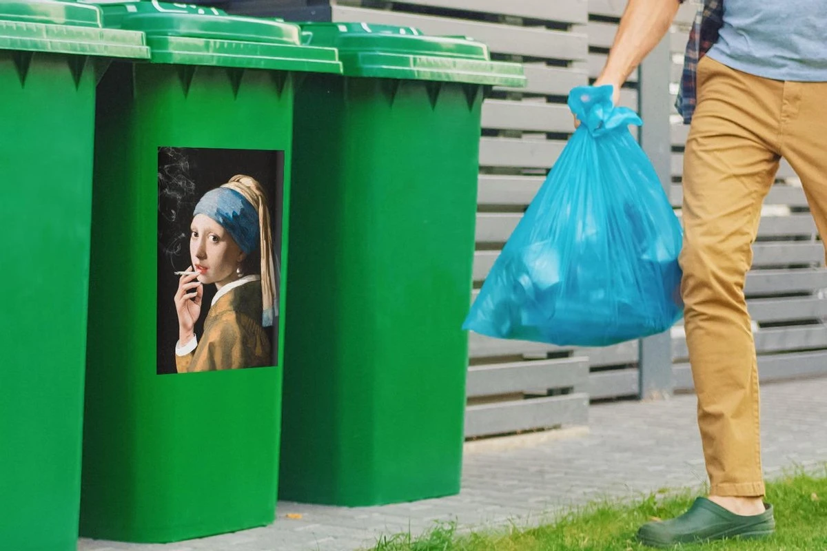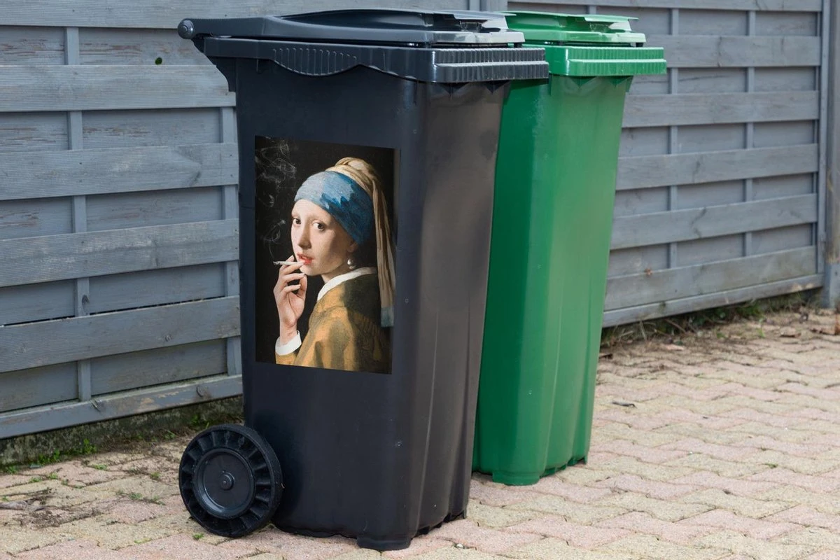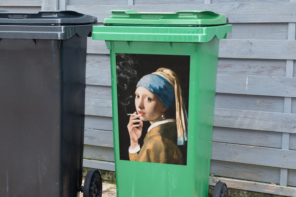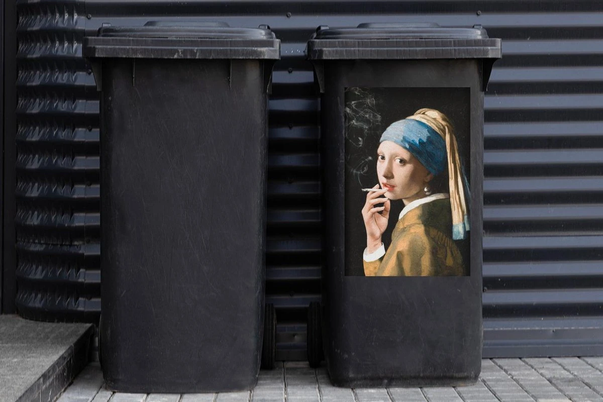 Autocollant De Récipient Vieux MaîtresIllustrations De Noël – Fille Avec Une Boucle D’oreille De Perle Par Le Vieux Maître Johannes Vermeer Avec Une Cigarette
