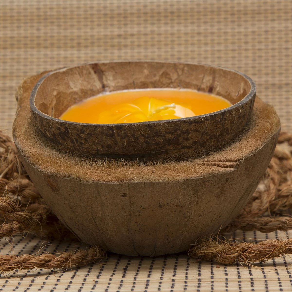 La bougie à la noix de coco, remplie d’arôme naturel exotique illumine et remplit n’importe quel environnement d’un parfum exotique.