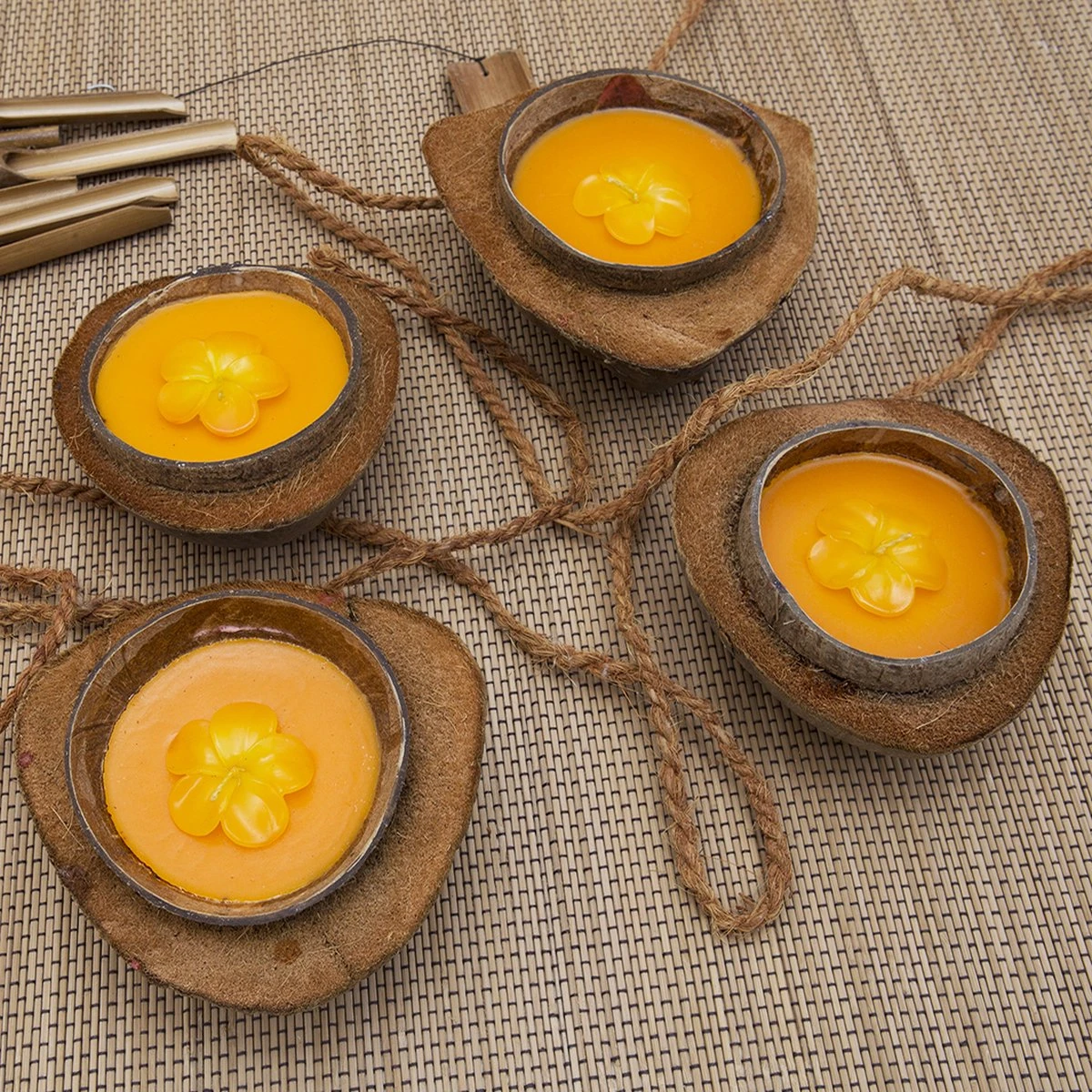 Pour ceux qui recherchent un ajout tropical à eigen paradis, la bougie parfumée à la noix de coco a tout pour plaire. Fabriqué à partir de coques de noix de coco séchées naturellement avec ou sans coque, de paraffine, de mèche de coton, d’huiles parfumées et de colorants naturels. Ces bougies sont 100% naturelles et ne contiennent aucune substance toxique.
