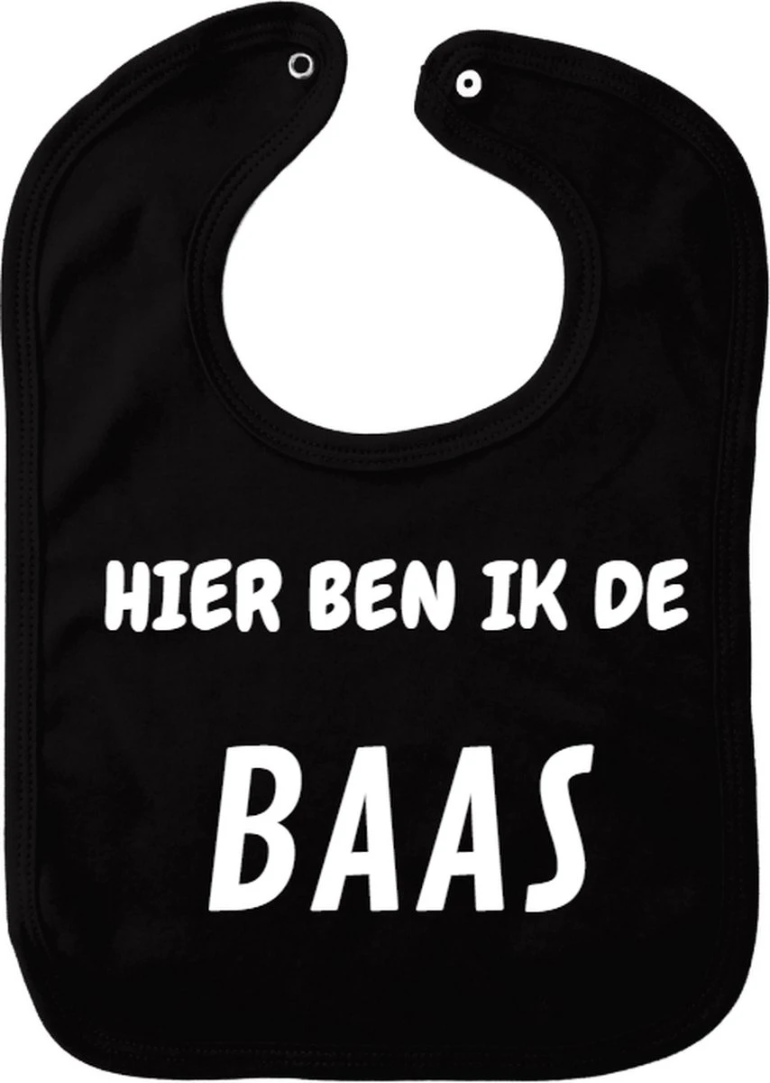Bavoir Here I Am The Boss – Zwart – Cadeau Maternité – Cadeau Baby Shower – Noël – Gender Reveal – Sinterklaas – Enceinte – Naissance – Bavoir Avec Bouton Poussoir