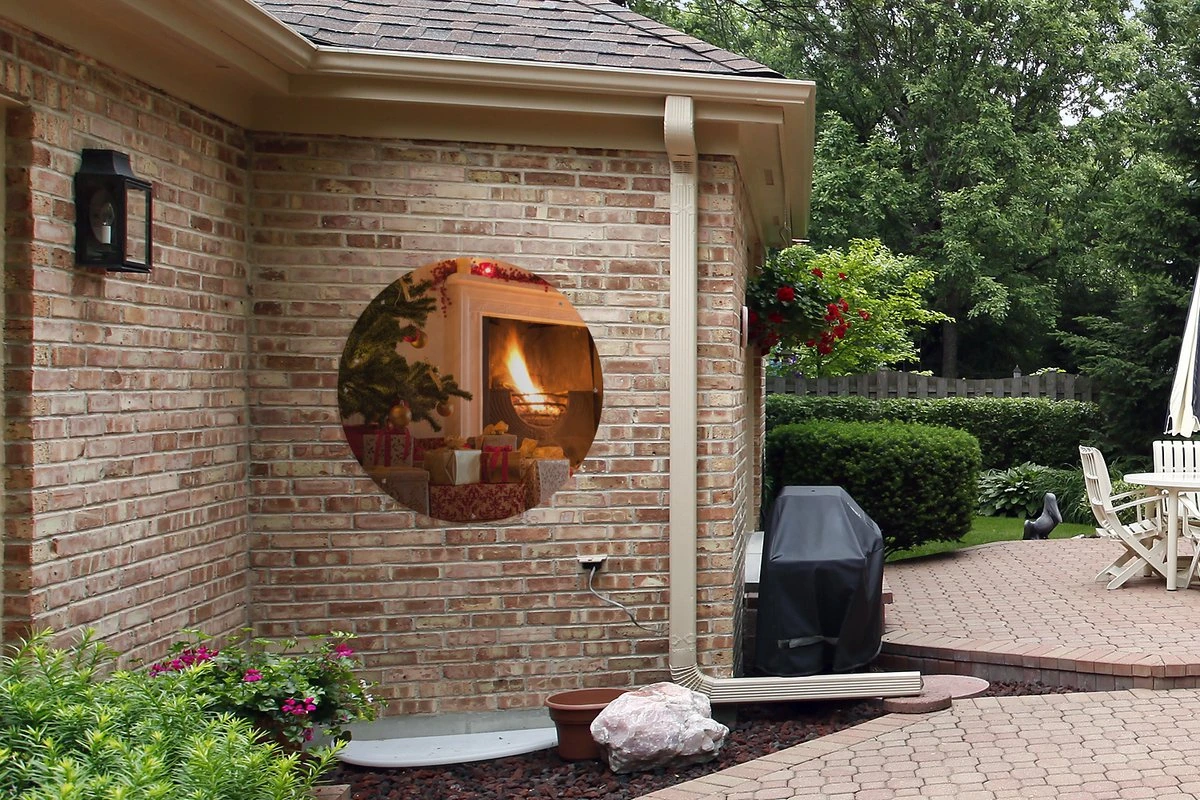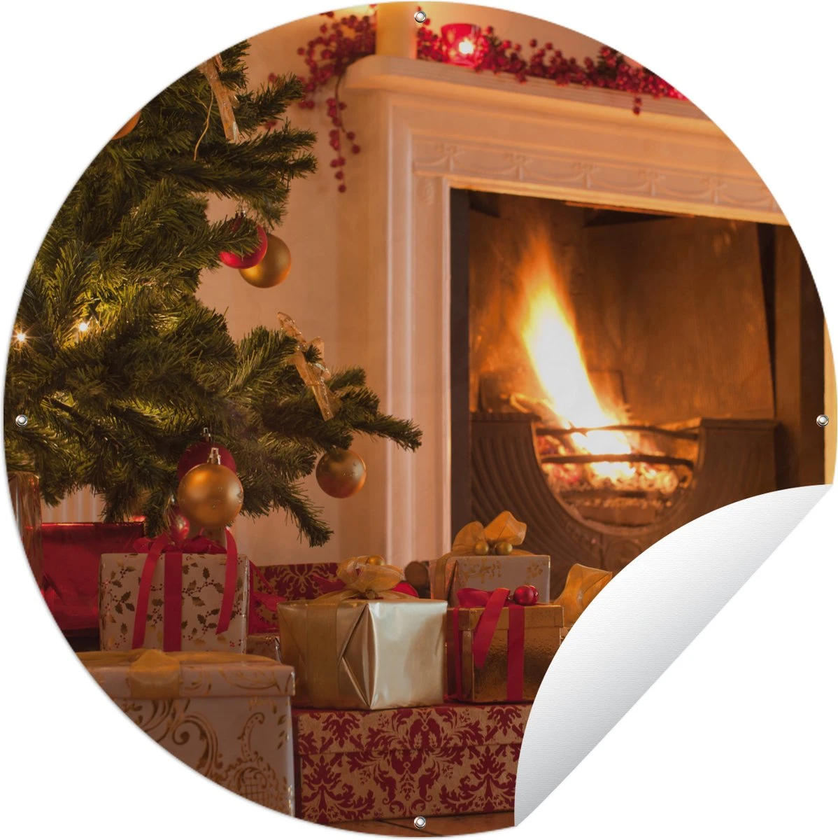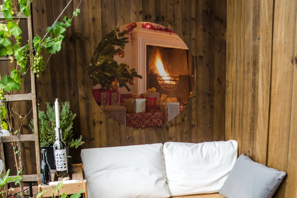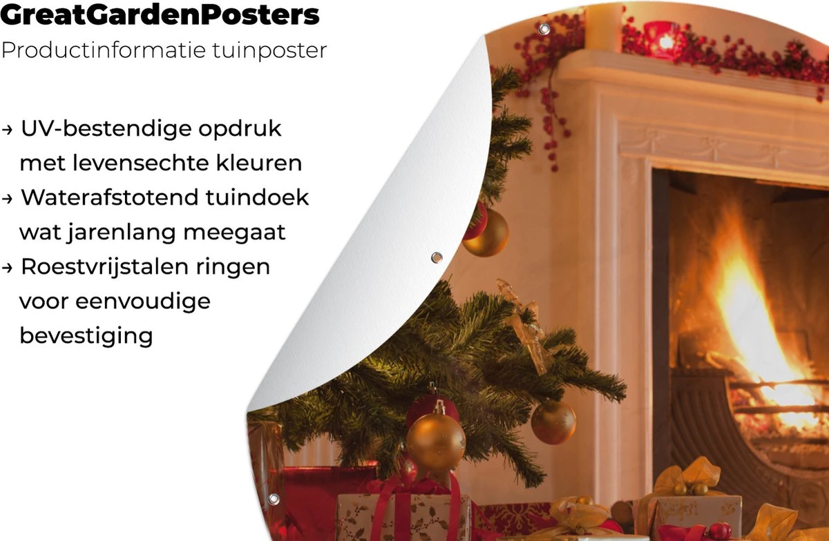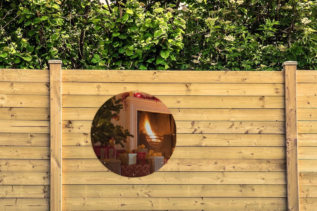 Cercles muraux à l’extérieur – Arbre de Noël et chaussette à côté de la cheminée – Affiche de jardin