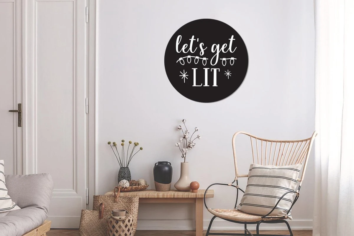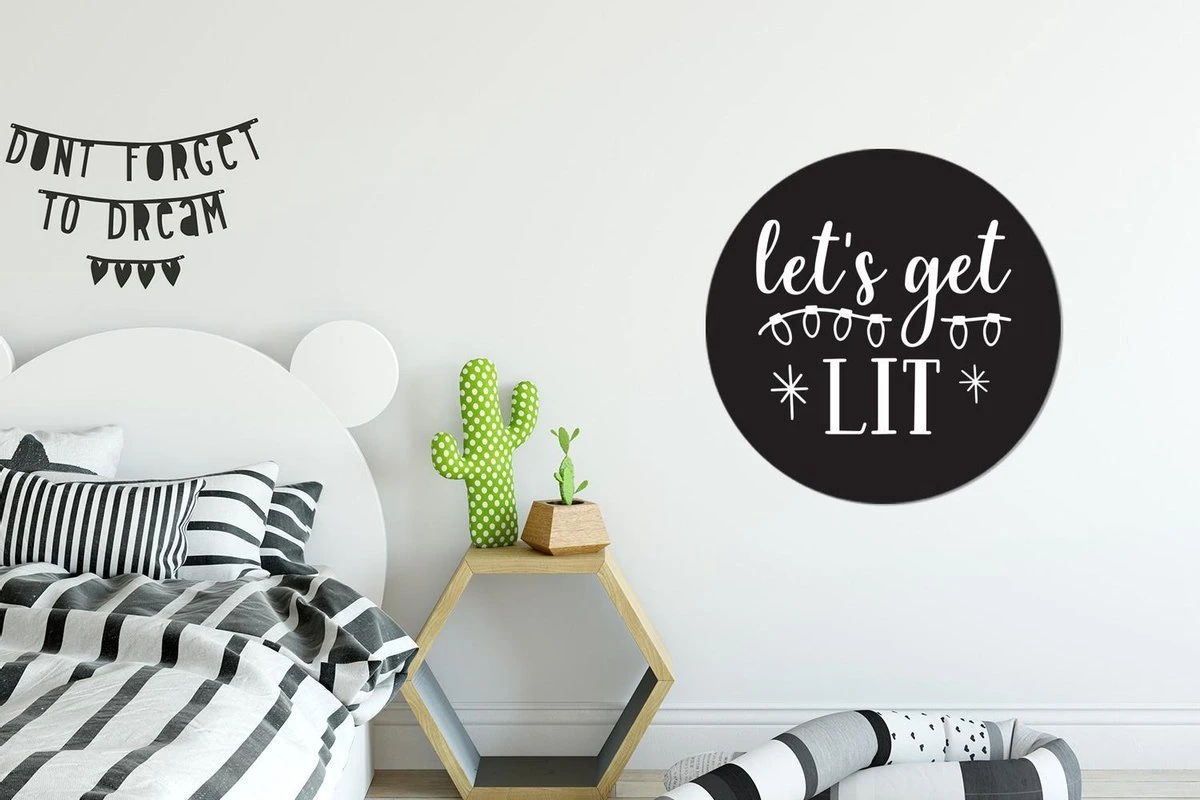 Citation De Noël Allumons – Nous Sur Un Fond Noir Sticker Papier Peint Cercle Mural – 50×50 Cm – Peinture Ronde – Cercle Papier Peint – Cercle Mural – Cercle Vivant – Autocollant & Découpe Ronde