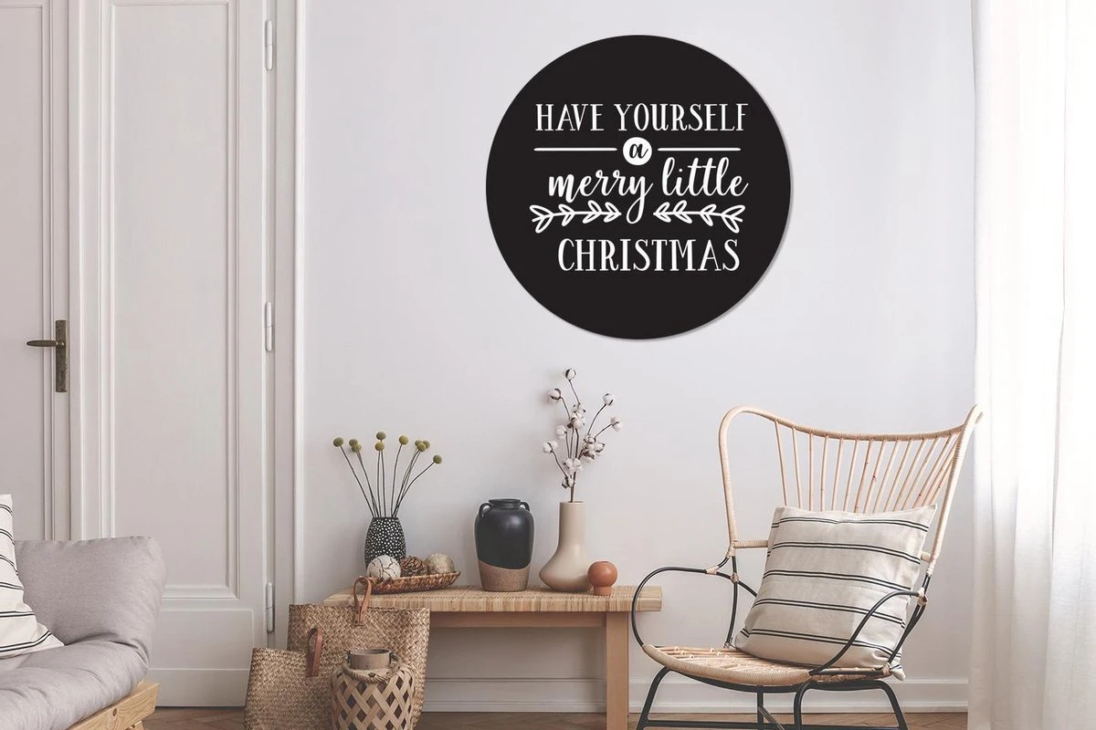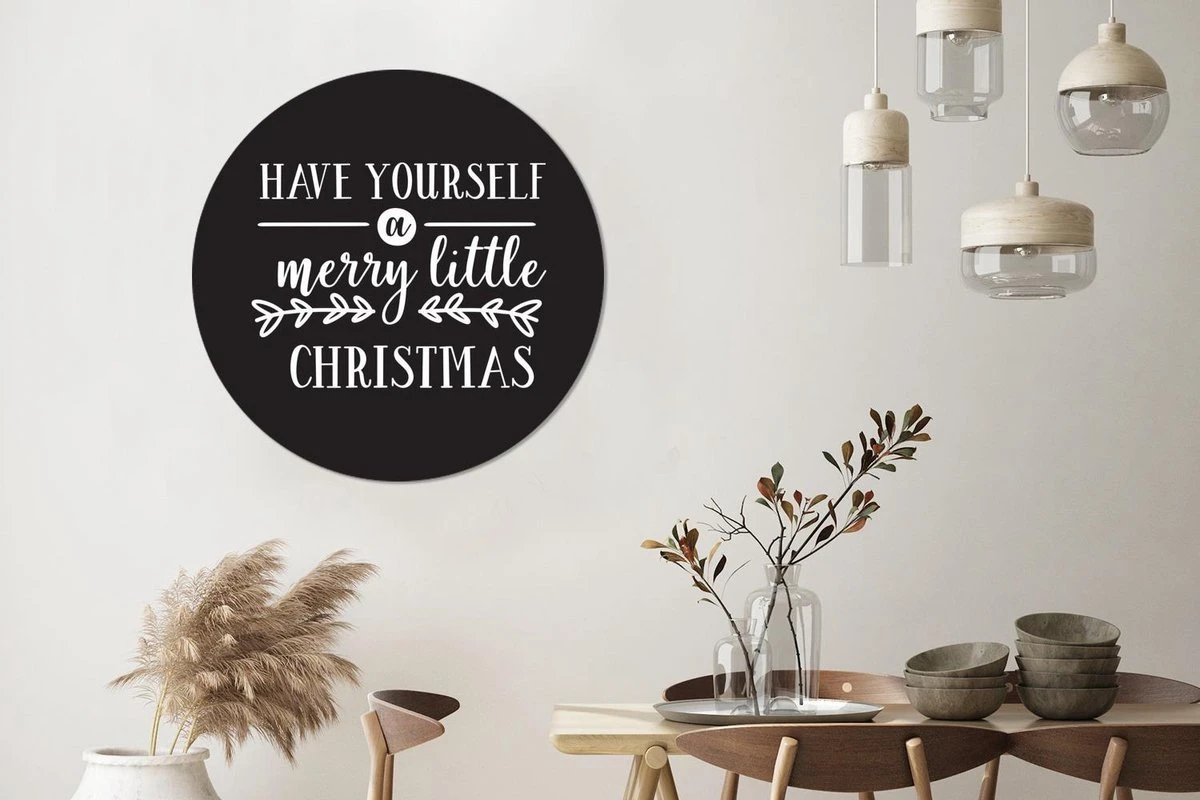 Citation De Noël Ayez Un Joyeux Petit Noël Avec Un Fond Noir Sticker Papier Peint Cercle Mural – 100×100 Cm – Peinture Ronde – Cercle Papier Peint – Cercle Mural – Cercle Vivant – Autocollant & Découpe Ronde
