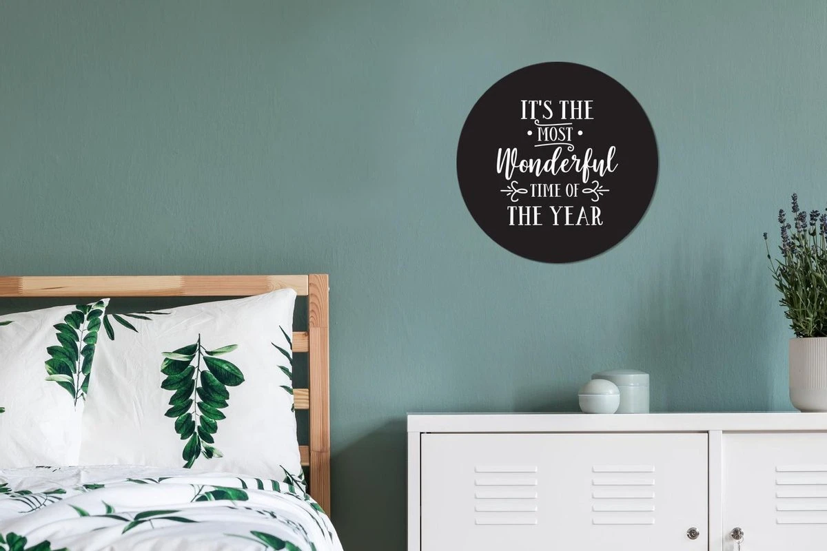 Citation De Noël C’est La Période La Plus Merveilleuse De L’année Sur Fond Noir Sticker Papier Peint Cercle Mural – ⌀ 30 Cm – Peinture Ronde – Cercle Papier Peint – Cercle Mural – Cercle Vivant – Autocollant Et Découpe Ronde
