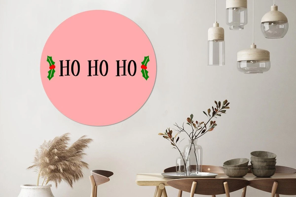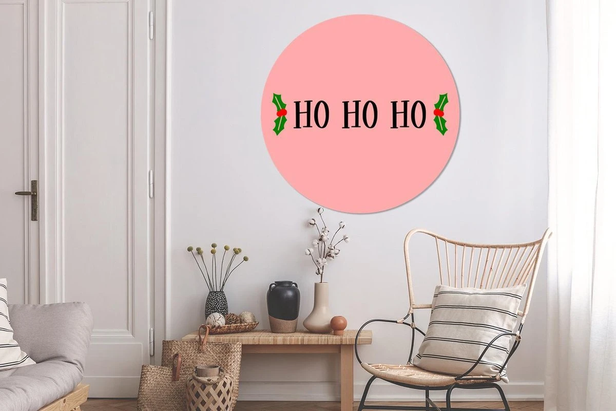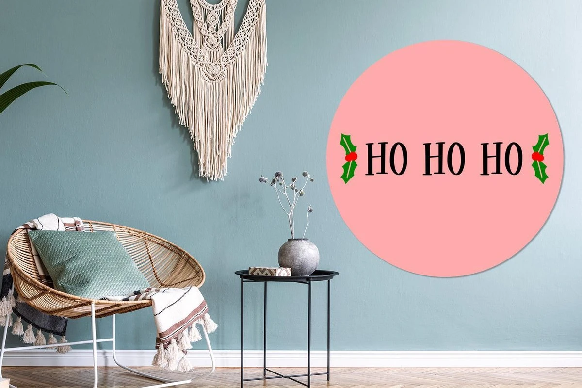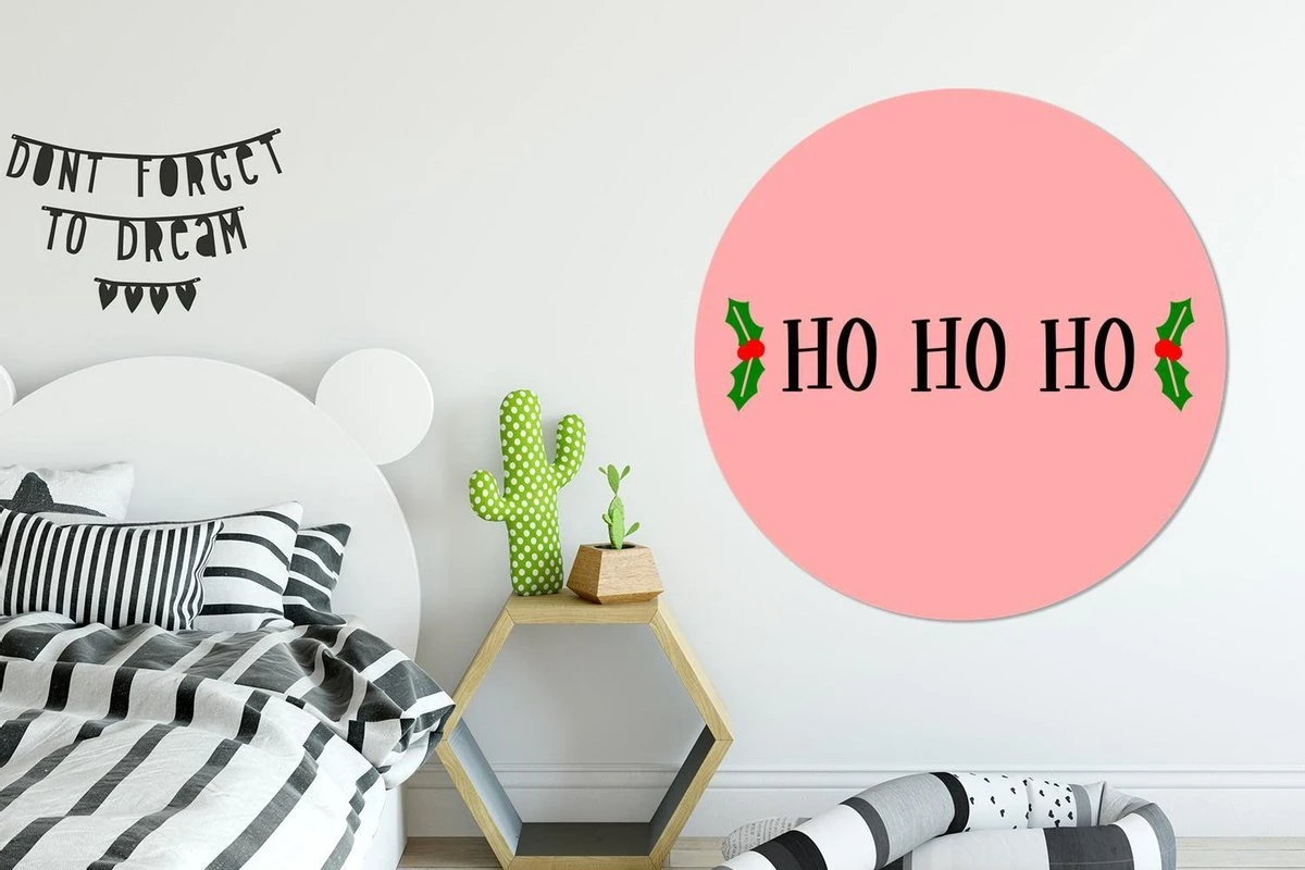 Citation De Noël Ho Ho Ho Avec Un Fond Rose Sticker Mural Cercle Mural – ⌀ 140 Cm – Peinture Ronde – Cercle Papier Peint – Cercle Mural – Cercle Vivant – Autocollant & Découpe Ronde
