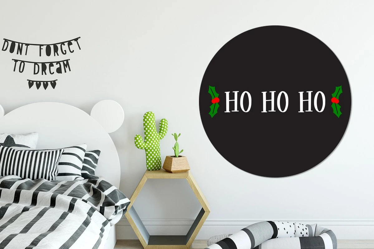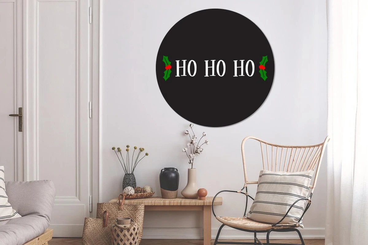 Citation De Noël Ho Ho Ho Sur Fond Noir Sticker Mural Cercle Mural – ⌀ 140 Cm – Peinture Ronde – Cercle Papier Peint – Cercle Mural – Cercle Vivant – Autocollant Et Découpe Ronde