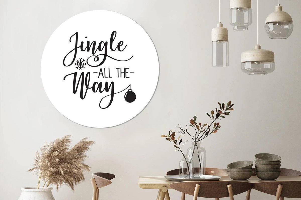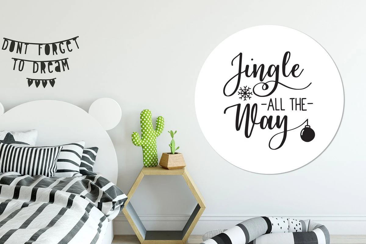 Citation De Noël Jingle Tout Le Chemin Sur Un Fond Blanc Sticker Papier Peint Cercle Mural – ⌀ 140 Cm – Peinture Ronde – Cercle Papier Peint – Cercle Mural – Cercle Vivant – Autocollant & Découpe Ronde