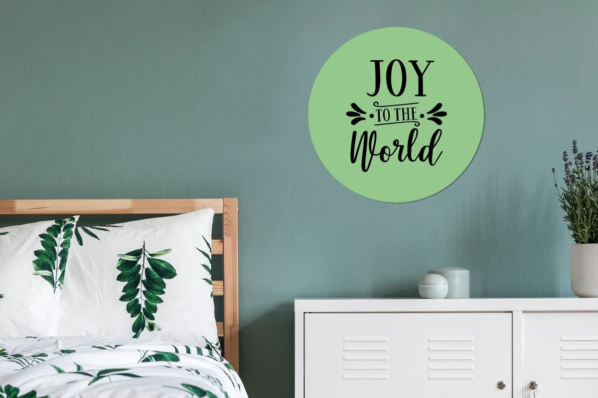 Citation De Noël Joy Au Monde Sur Fond Vert Sticker Mural Cercle Mural – 50×50 Cm – Peinture Ronde – Cercle Papier Peint – Cercle Mural – Cercle Vivant – Autocollant Et Coupe Ronde
