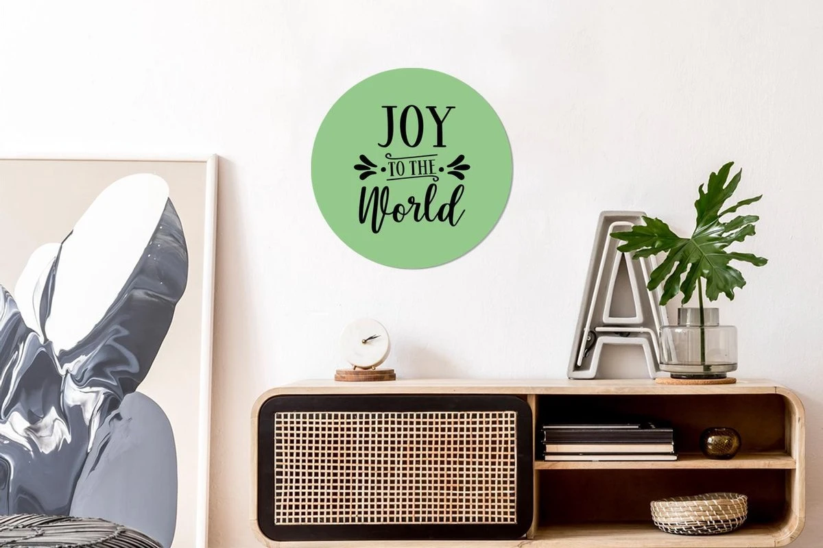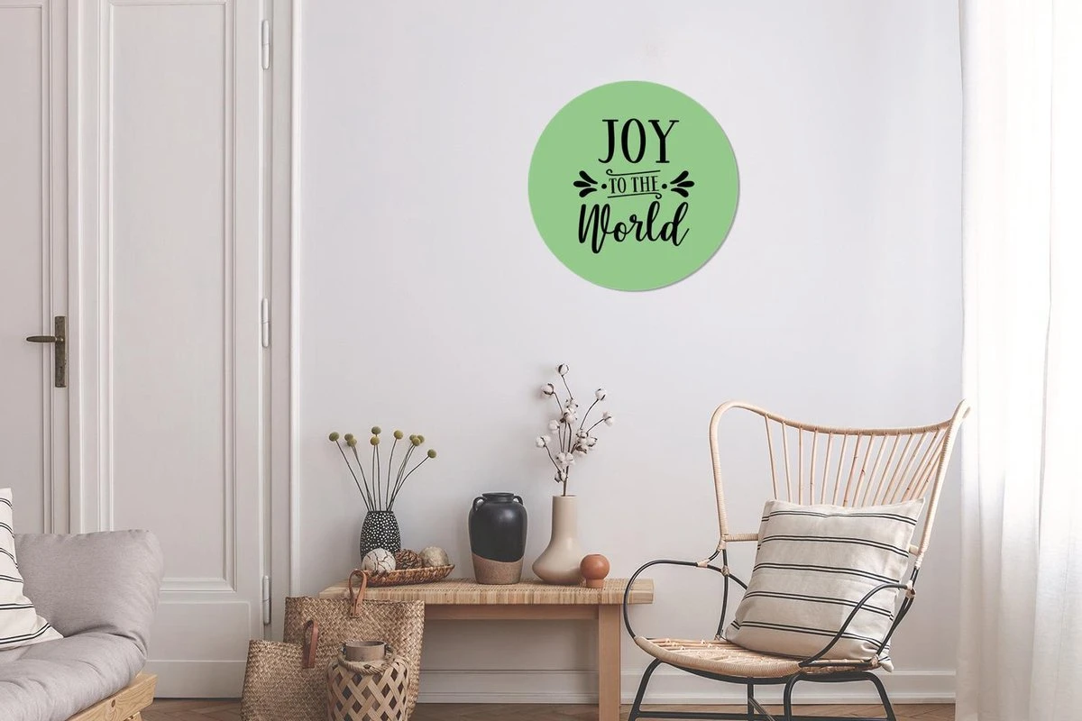 Citation De Noël Joy Au Monde Sur Fond Vert Sticker Papier Peint Cercle Mural – ⌀ 30 Cm – Peinture Ronde – Cercle Papier Peint – Cercle Mural – Cercle Vivant – Autocollant & Découpe Ronde