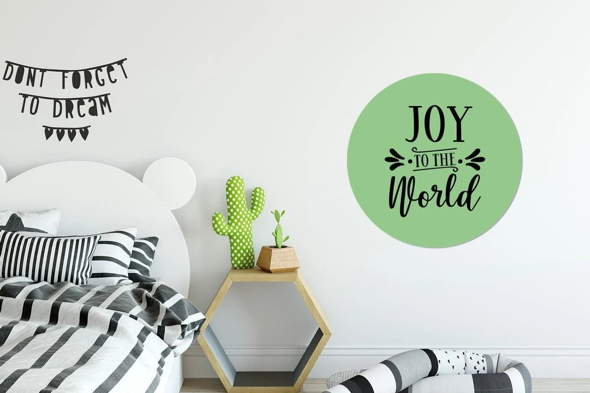 Citation De Noël Joy Au Monde Sur Fond Vert Sticker Papier Peint Cercle Mural – 80×80 Cm – Peinture Ronde – Cercle Papier Peint – Cercle Mural – Cercle Vivant – Autocollant & Coupe Ronde