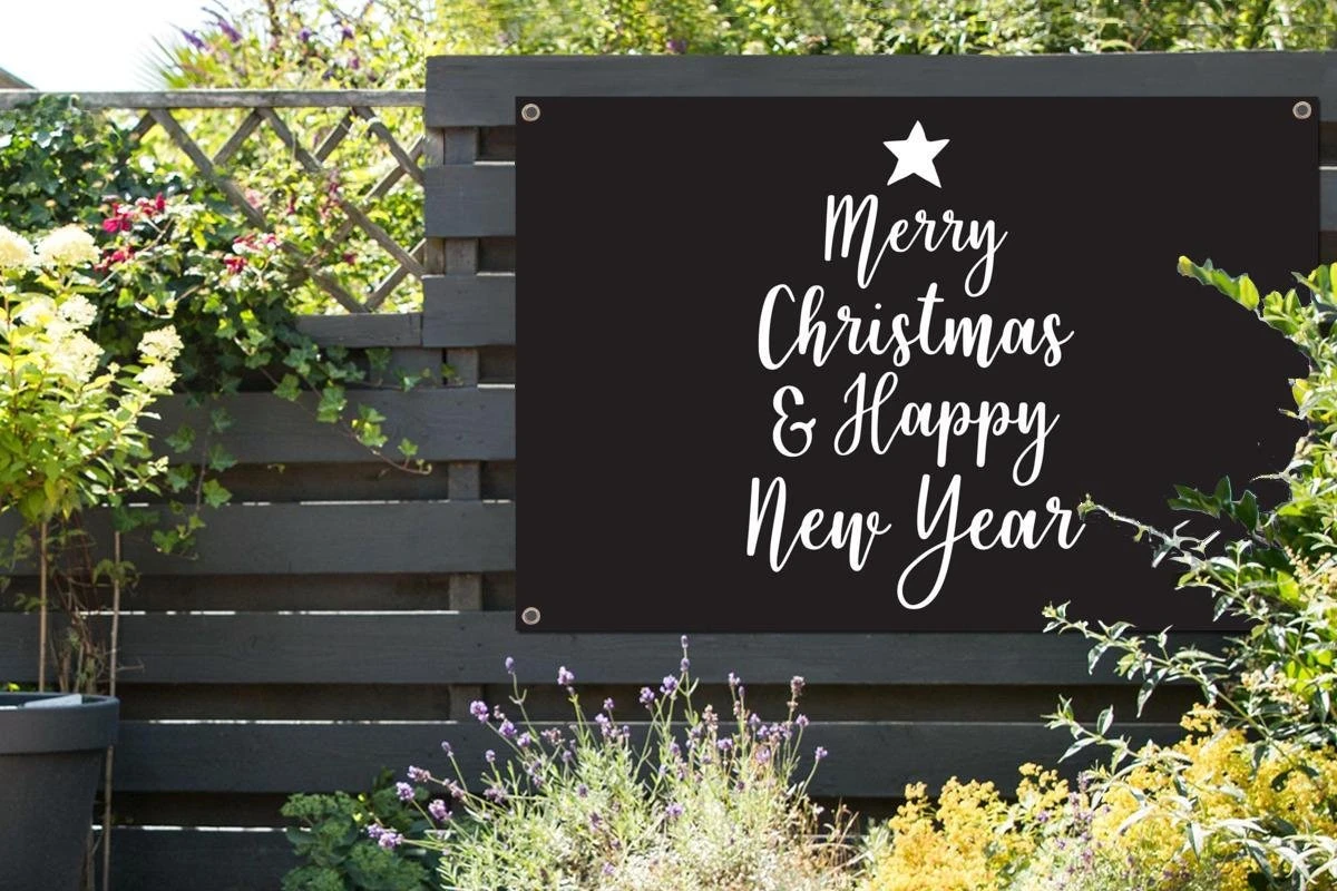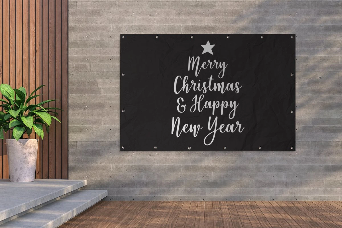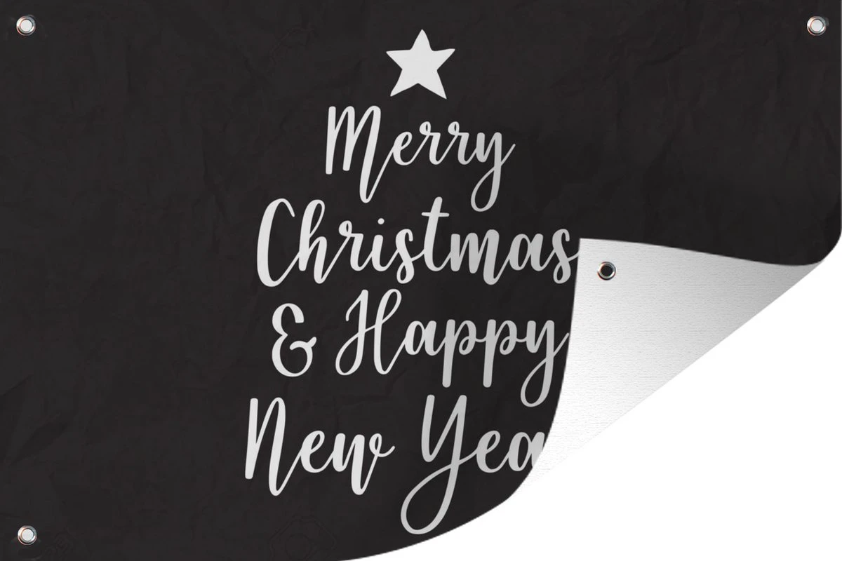 Citation De Noël Joyeux Noël Et Happy Année Avec Un Fond Noir 180×120 Cm XXL / De Groot Taille!