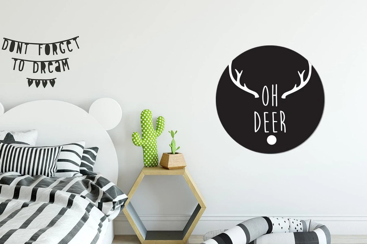 Citation De Noël Oh Cerf Sur Fond Noir Sticker Mural Cercle Mural – 80×80 Cm – Peinture Ronde – Cercle Papier Peint – Cercle Mural – Cercle Vivant – Autocollant & Découpe Ronde