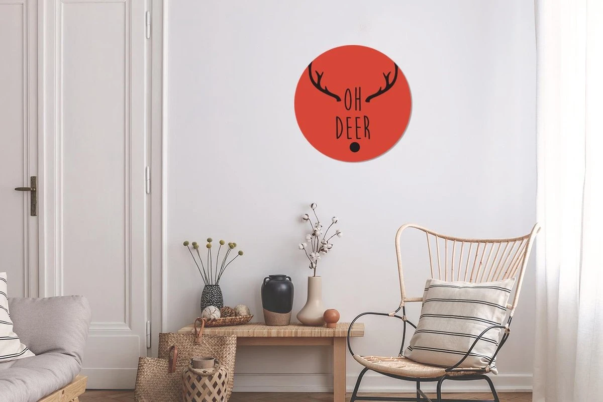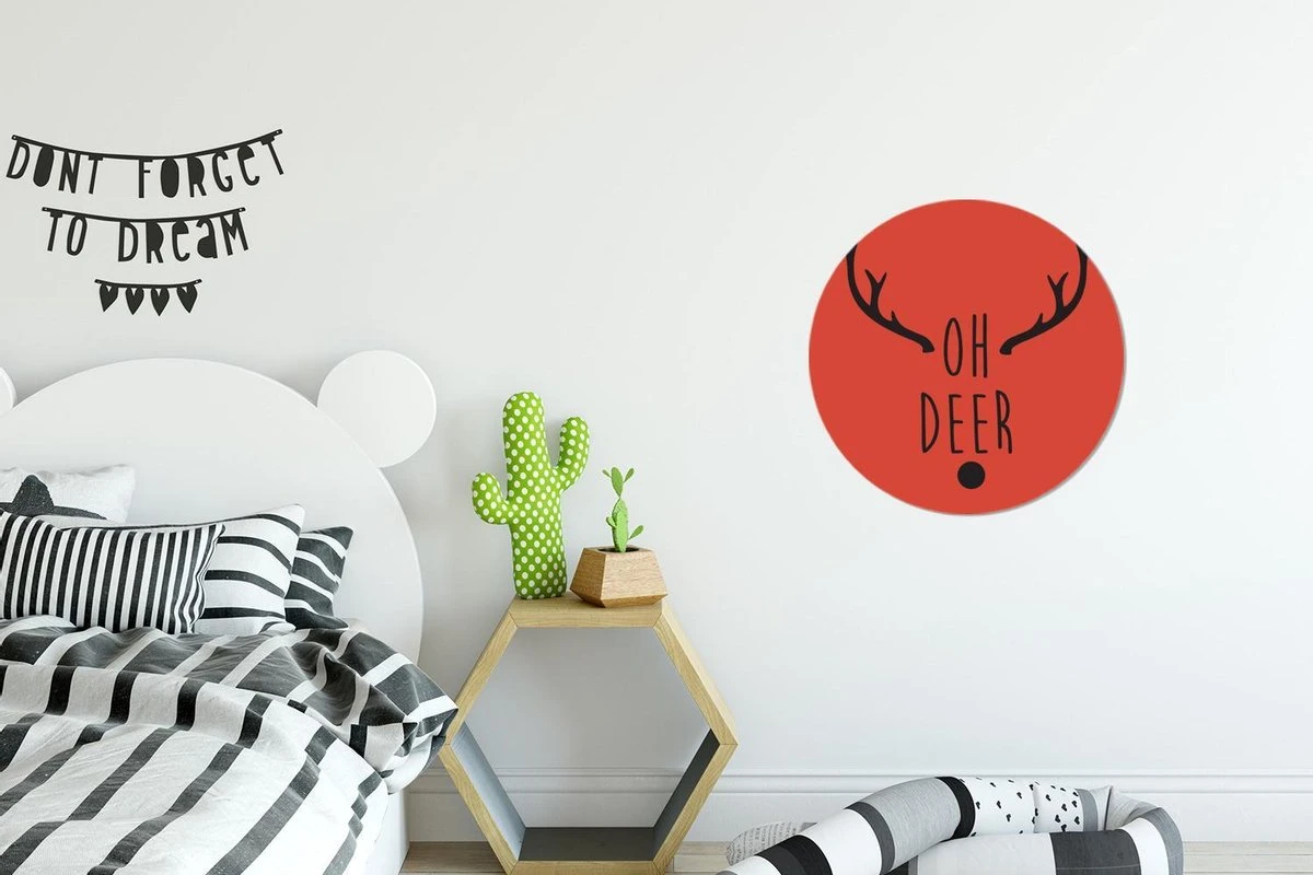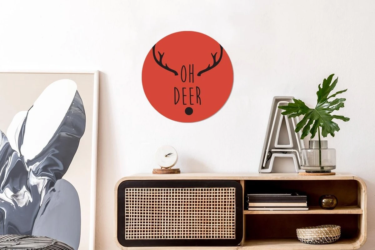 Citation De Noël Oh Cerf Sur Fond Rouge Sticker Mural Cercle Mural – ⌀ 30 Cm – Peinture Ronde – Cercle Papier Peint – Cercle Mural – Cercle Vivant – Autocollant Et Découpe Ronde