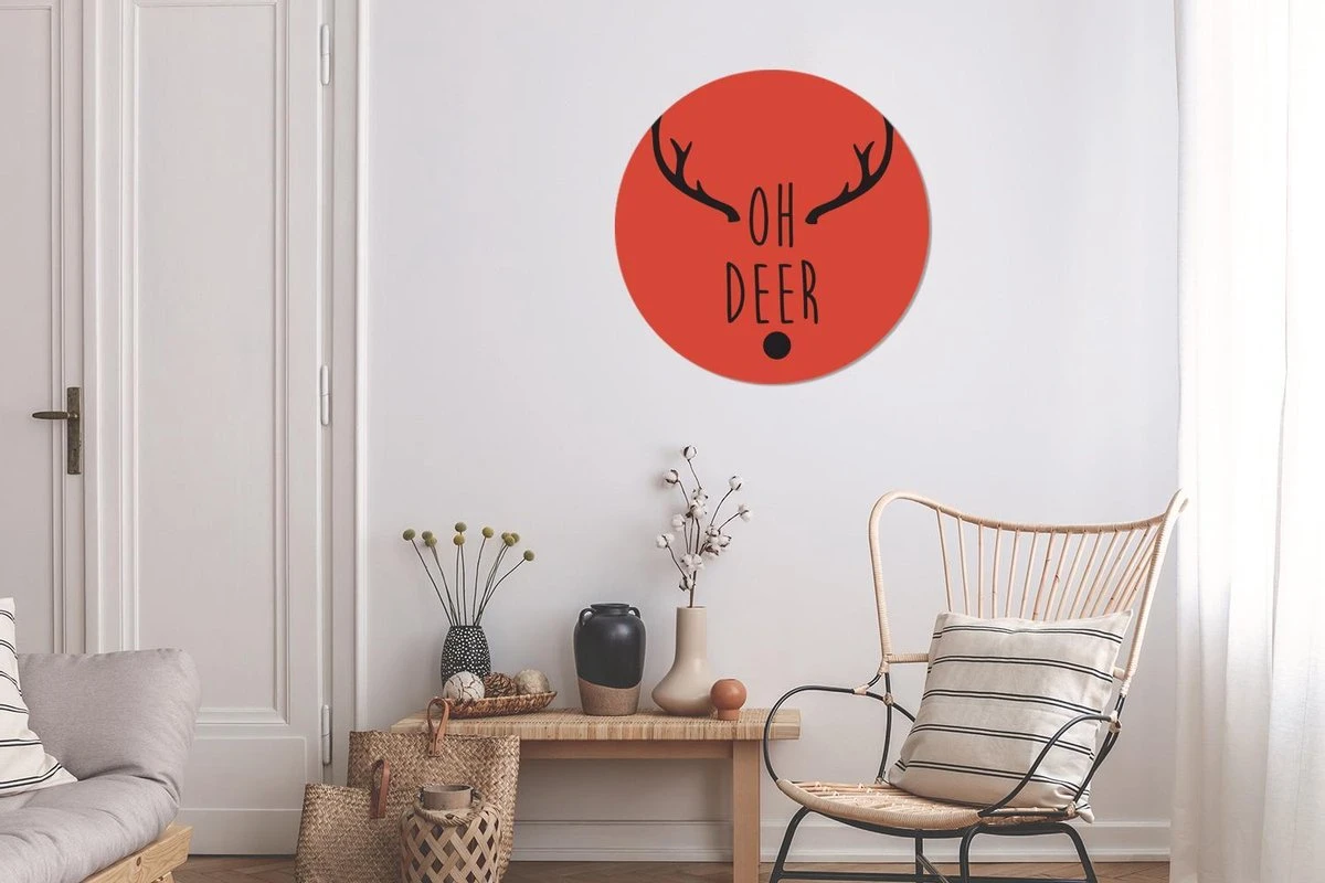 Citation De Noël Oh Cerf Sur Fond Rouge Sticker Mural Cercle Mural – 50×50 Cm – Peinture Ronde – Cercle Papier Peint – Cercle Mural – Cercle Vivant – Autocollant Et Découpe Ronde