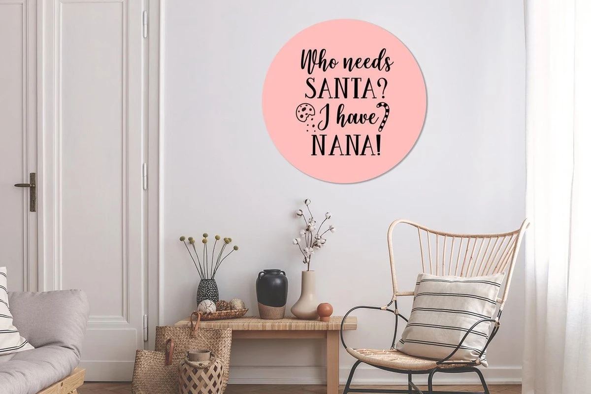 Citation De Noël Qui A Besoin Du Père Noël? J’ai Nana! Sur Fond Rose Sticker Mural Cercle Mural – 100×100 Cm – Peinture Ronde – Cercle Papier Peint – Cercle Mural – Cercle Vivant – Autocollant & Découpe Ronde