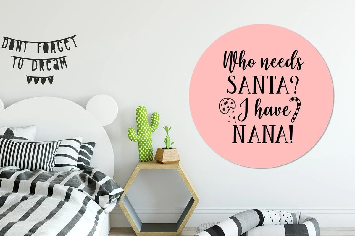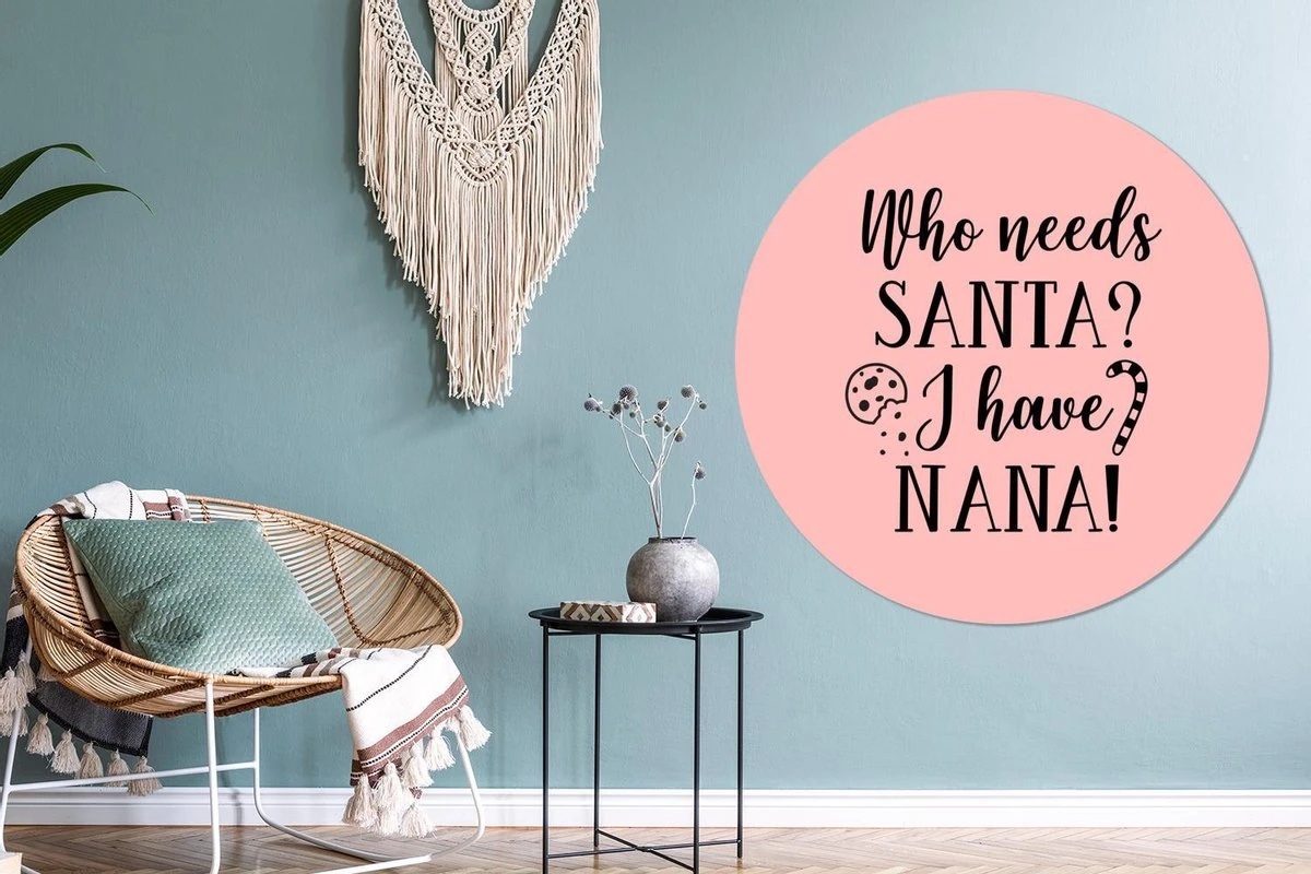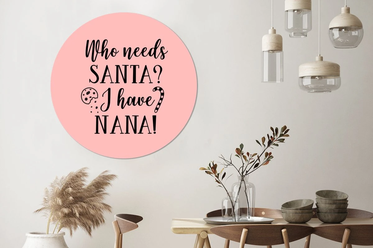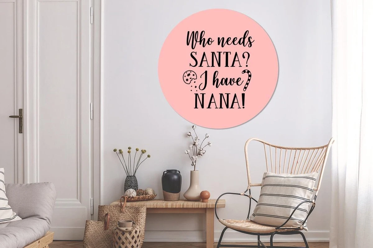 Citation De Noël Qui A Besoin Du Père Noël? J’ai Nana! Sur Fond Rose Sticker Mural Cercle Mural – ⌀ 120 Cm – Peinture Ronde – Cercle Papier Peint – Cercle Mural – Cercle Vivant – Autocollant & Découpe Ronde