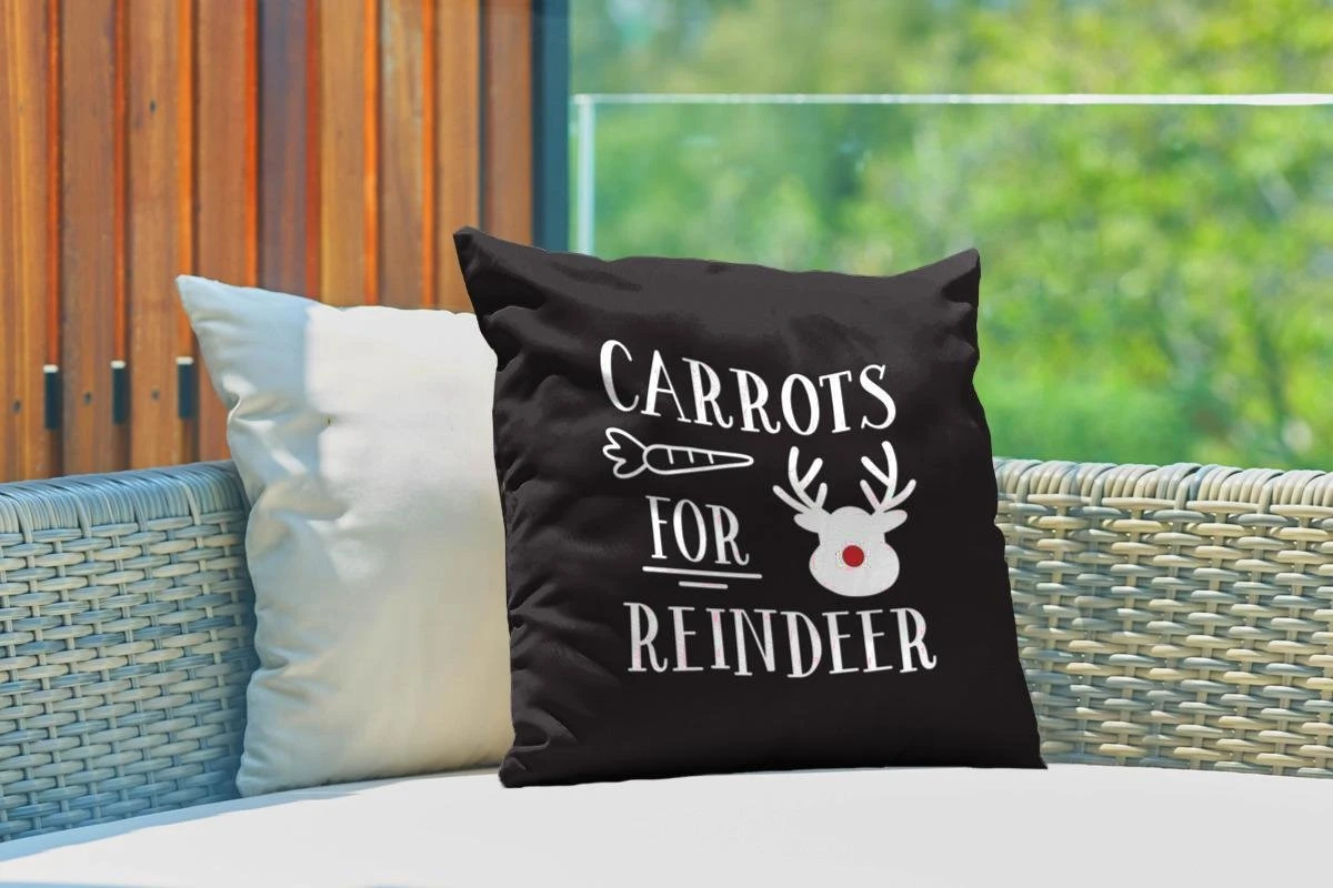 Coussins D’extérieur – Jardin – Citation Carottes Pour Renne Décoration Murale Noël Noir – 45×45 Cm