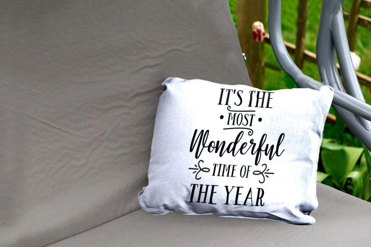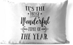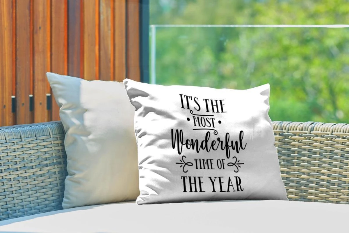 Coussins D’extérieur – Jardin – Citation De Noël C’est La Plus Belle Période De L’année Sur Fond Blanc – 50×30 Cm