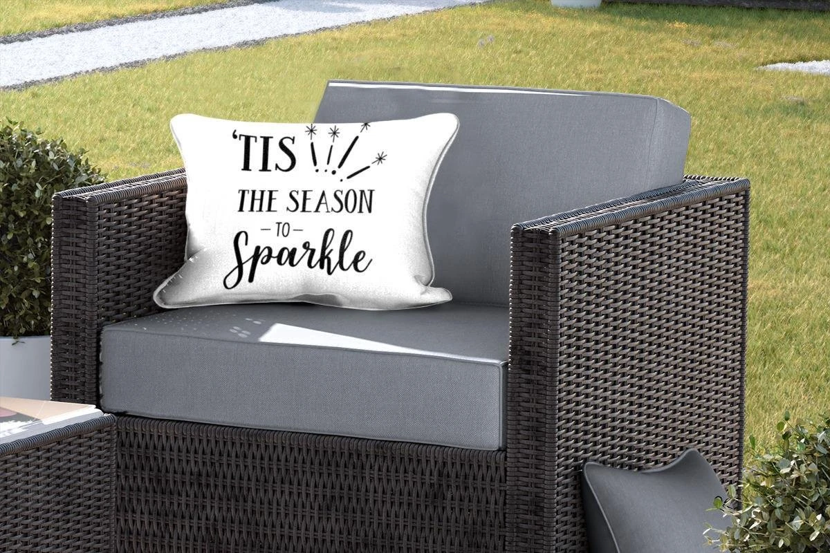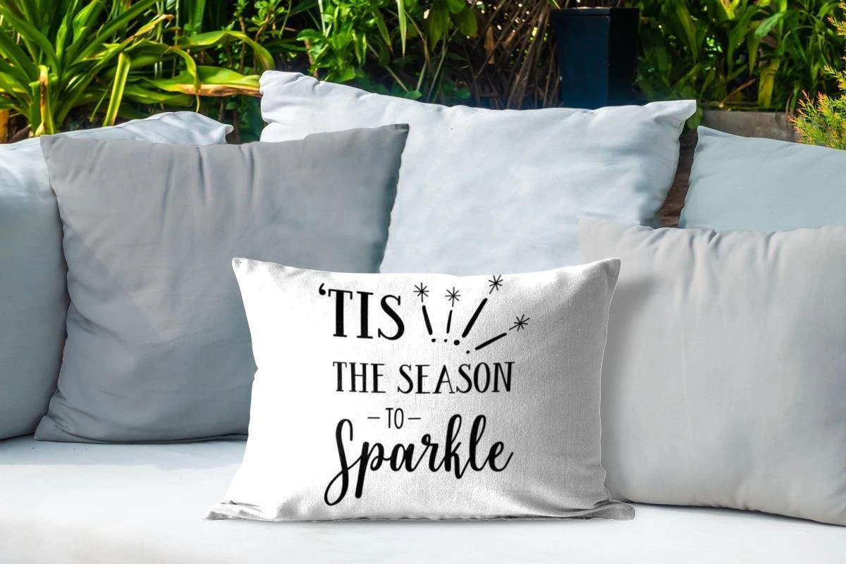 Coussins D’extérieur – Jardin – Citation De Noël C’est La Saison De Scintiller Sur Fond Blanc – 50×30 Cm