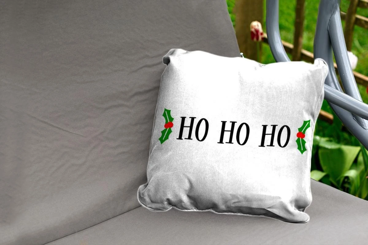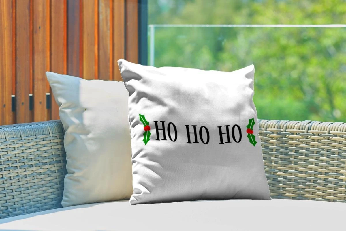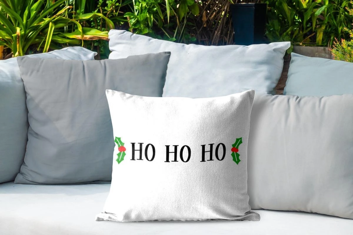 Coussins D’extérieur – Jardin – Citation De Noël Ho Ho Ho Sur Fond Blanc – 45×45 Cm
