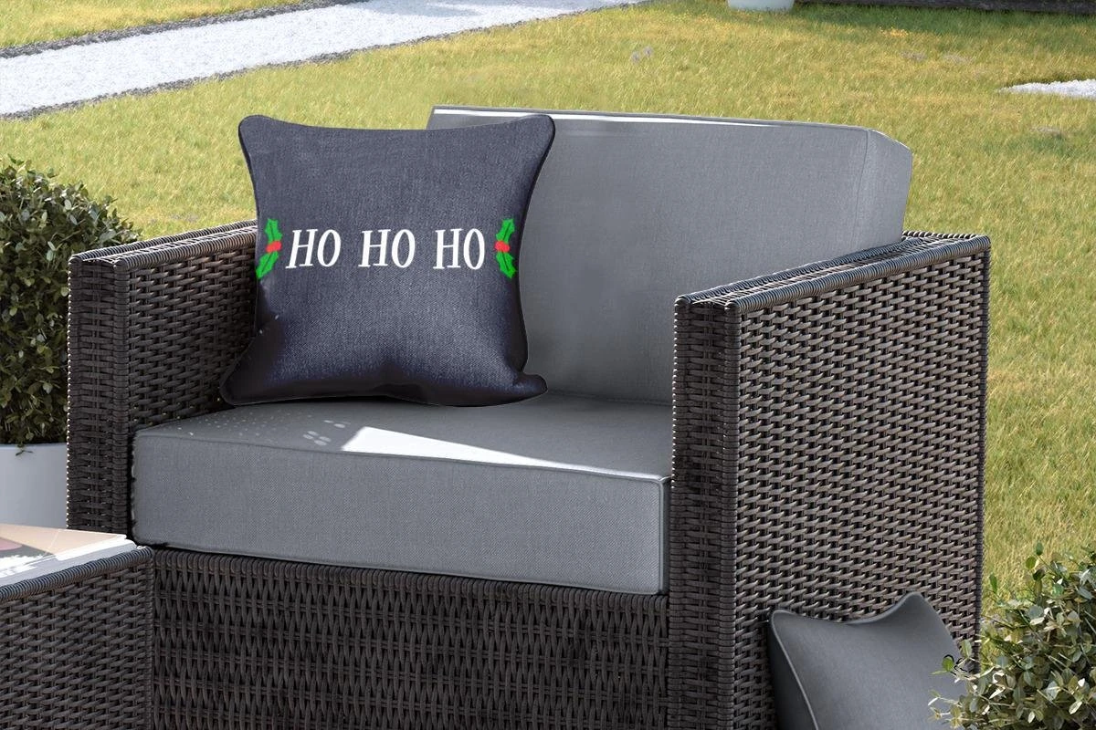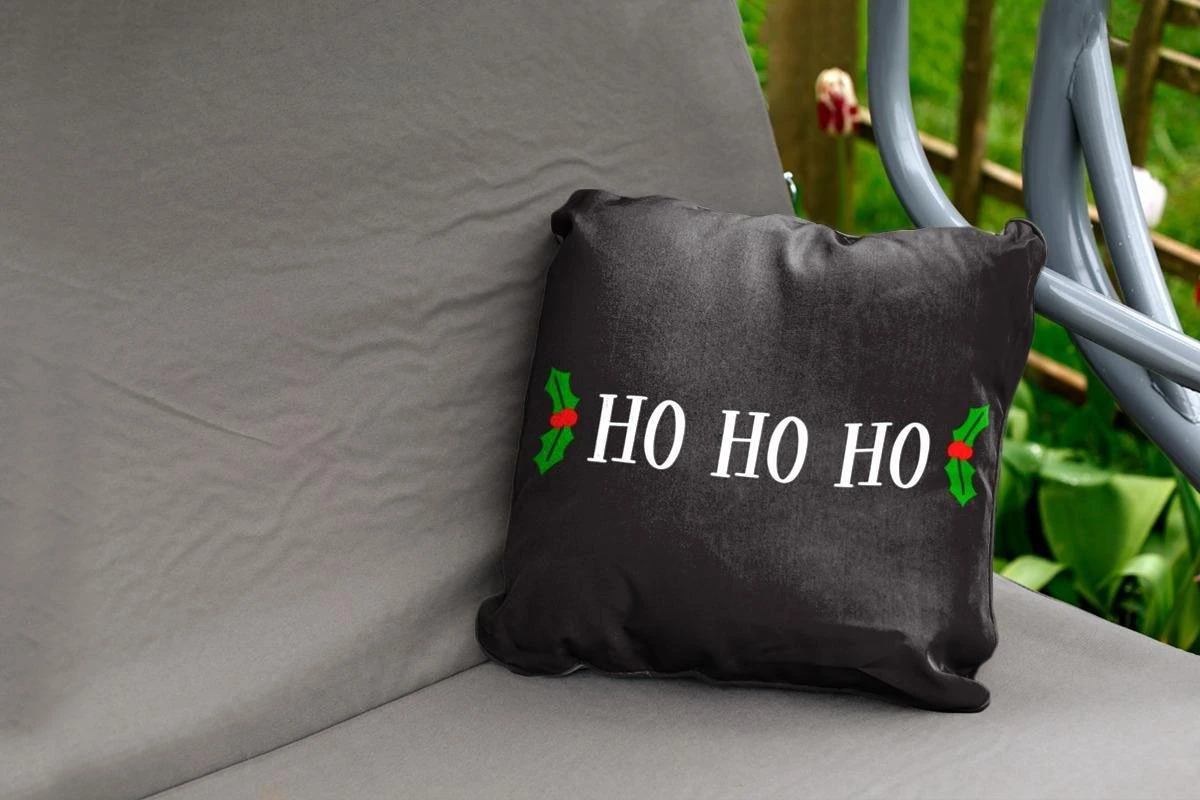 Coussins D’extérieur – Jardin – Citation De Noël Ho Ho Ho Sur Fond Noir – 40×40 Cm