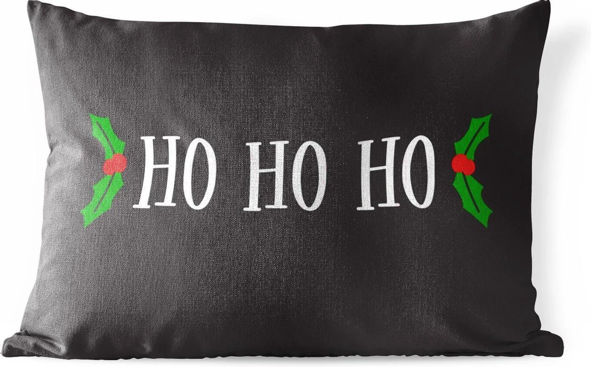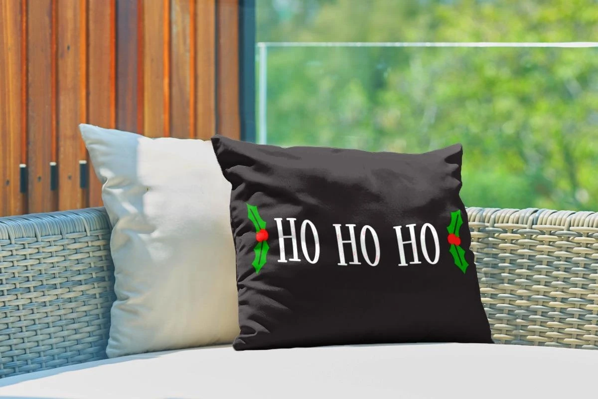 Coussins D’extérieur – Jardin – Citation De Noël Ho Ho Ho Sur Fond Noir – 50×30 Cm