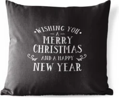 Coussins D’extérieur – Jardin – Citation De Noël Je Vous Souhaite Un Joyeux Noël Sur Fond Noir – 40×40 Cm