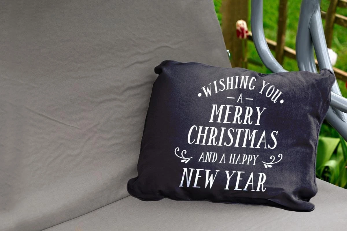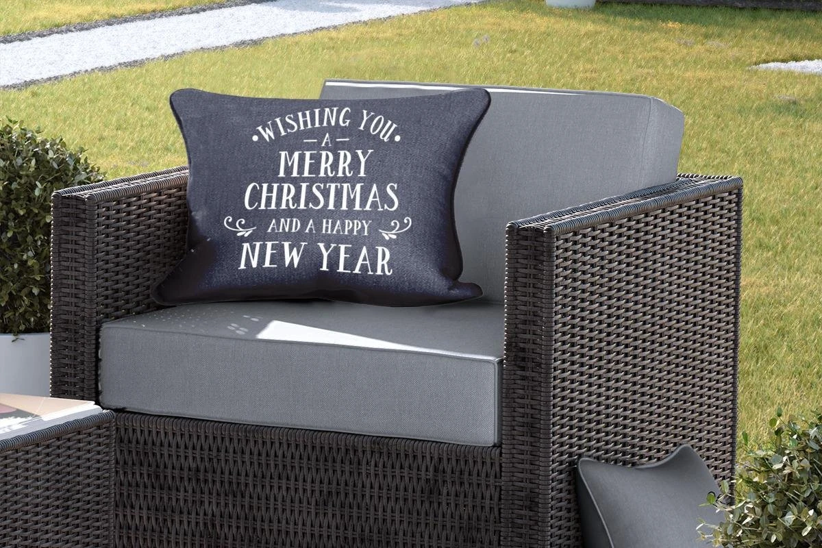 Coussins D’extérieur – Jardin – Citation De Noël Je Vous Souhaite Un Joyeux Noël Sur Fond Noir – 60×40 Cm