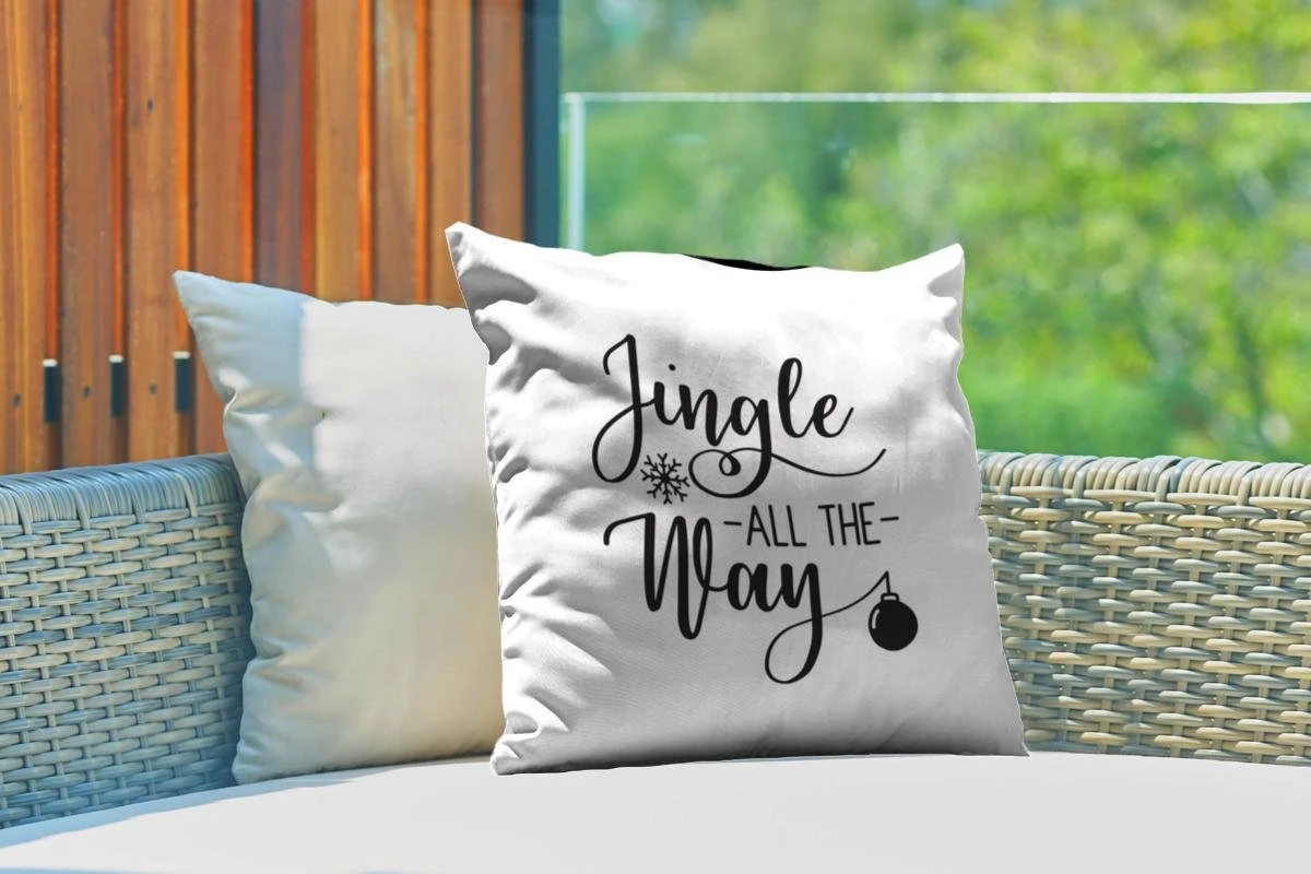 Coussins D’extérieur – Jardin – Citation De Noël Jingle All Way Sur Fond Blanc – 45×45 Cm