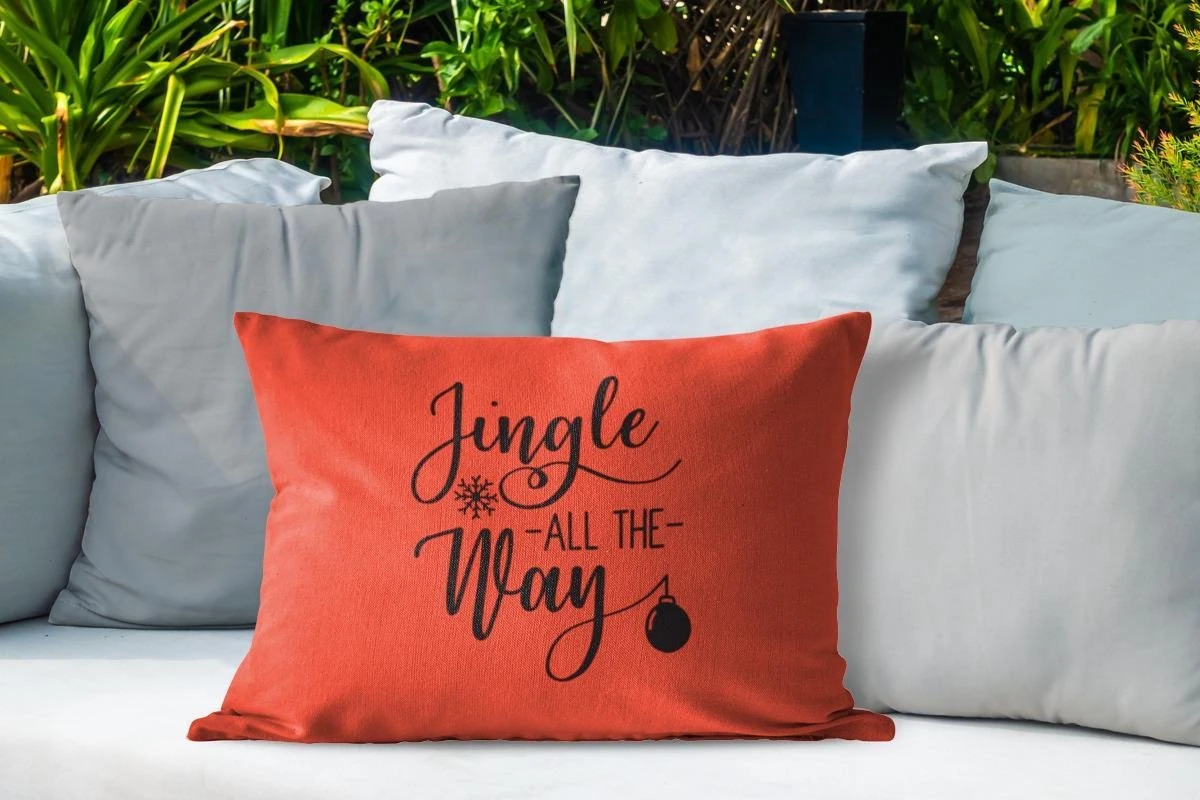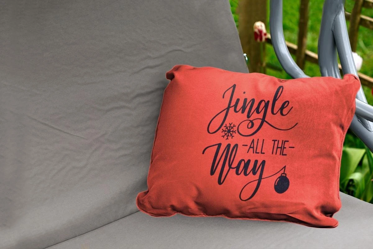 Coussins D’extérieur – Jardin – Citation De Noël Jingle Tout Le Chemin Avec Un Fond Rouge – 60×40 Cm