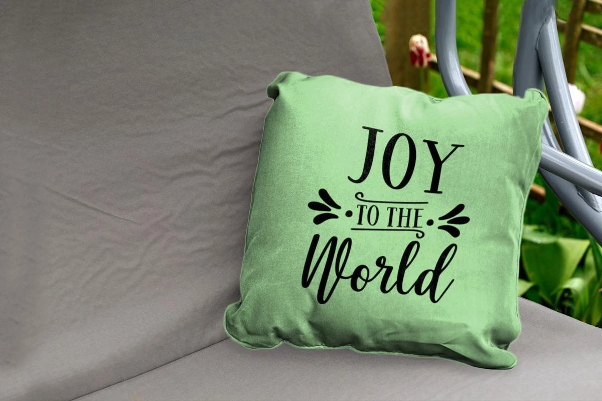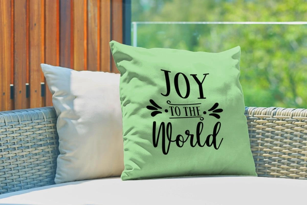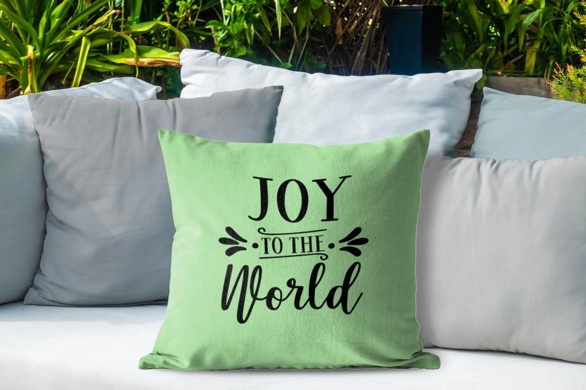 Coussins D’extérieur – Jardin – Citation De Noël Joy Au Monde Sur Fond Vert – 50×50 Cm