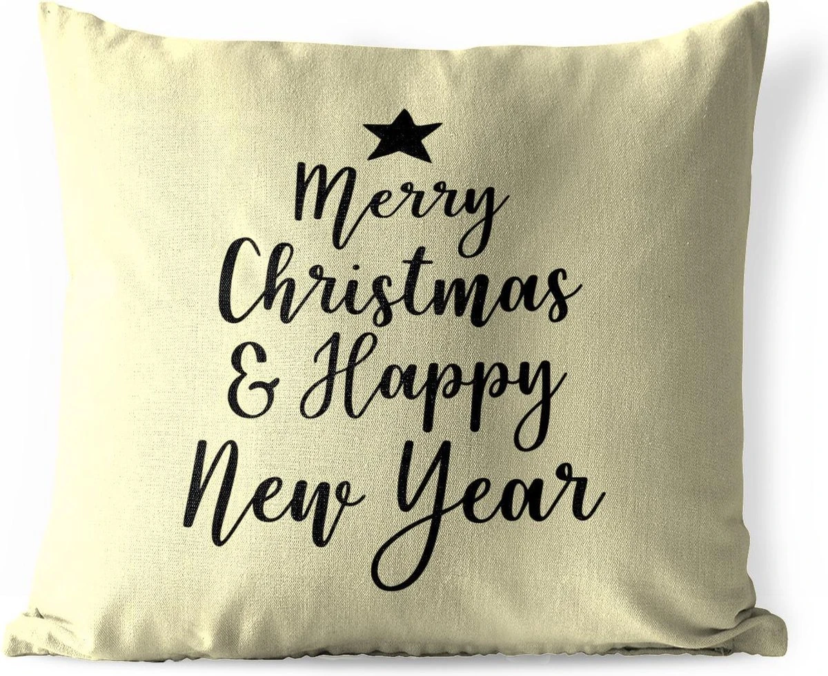 Coussins D’extérieur – Jardin – Citation De Noël Merry Christmas & Happy New Year Sur Fond Jaune – 60×60 Cm