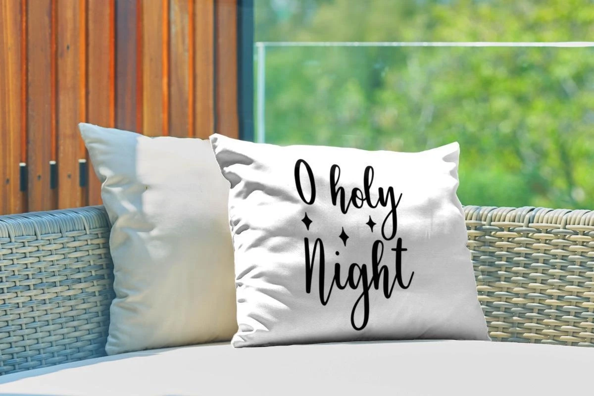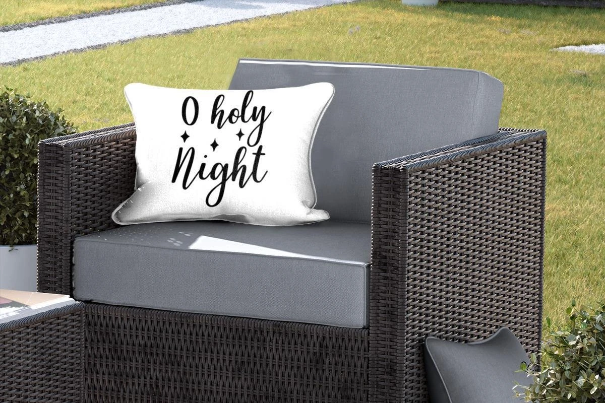 Coussins D’extérieur – Jardin – Citation De Noël Ô Sainte Nuit Sur Fond Blanc – 50×30 Cm