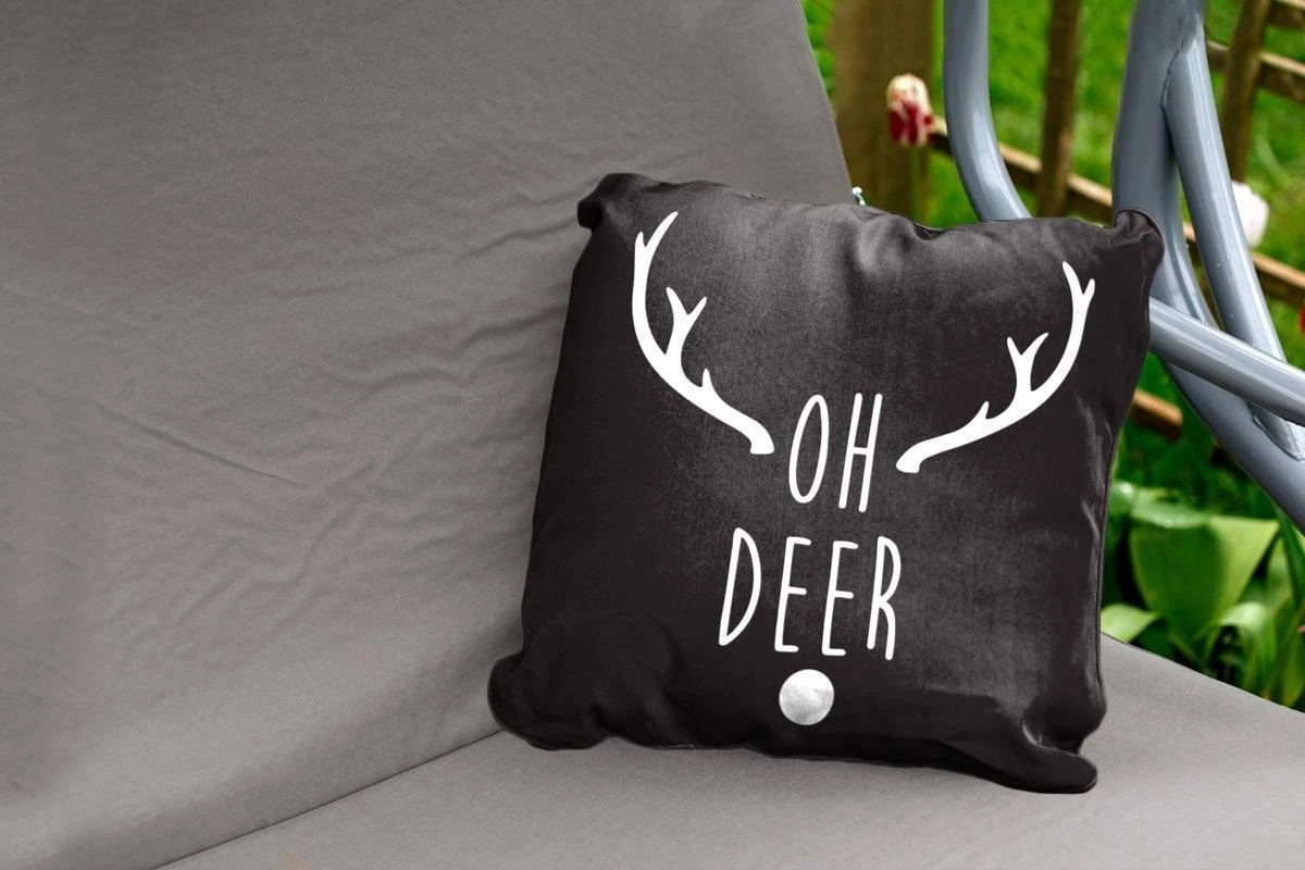 Coussins D’extérieur – Jardin – Citation De Noël Oh Cerf Sur Fond Noir – 45×45 Cm