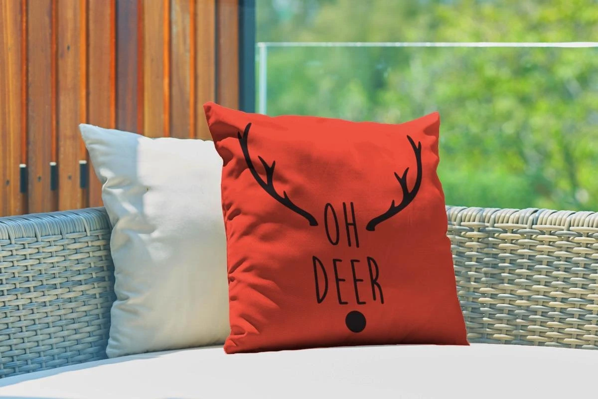 Coussins D’extérieur – Jardin – Citation De Noël Oh Cerf Sur Fond Rouge – 45×45 Cm