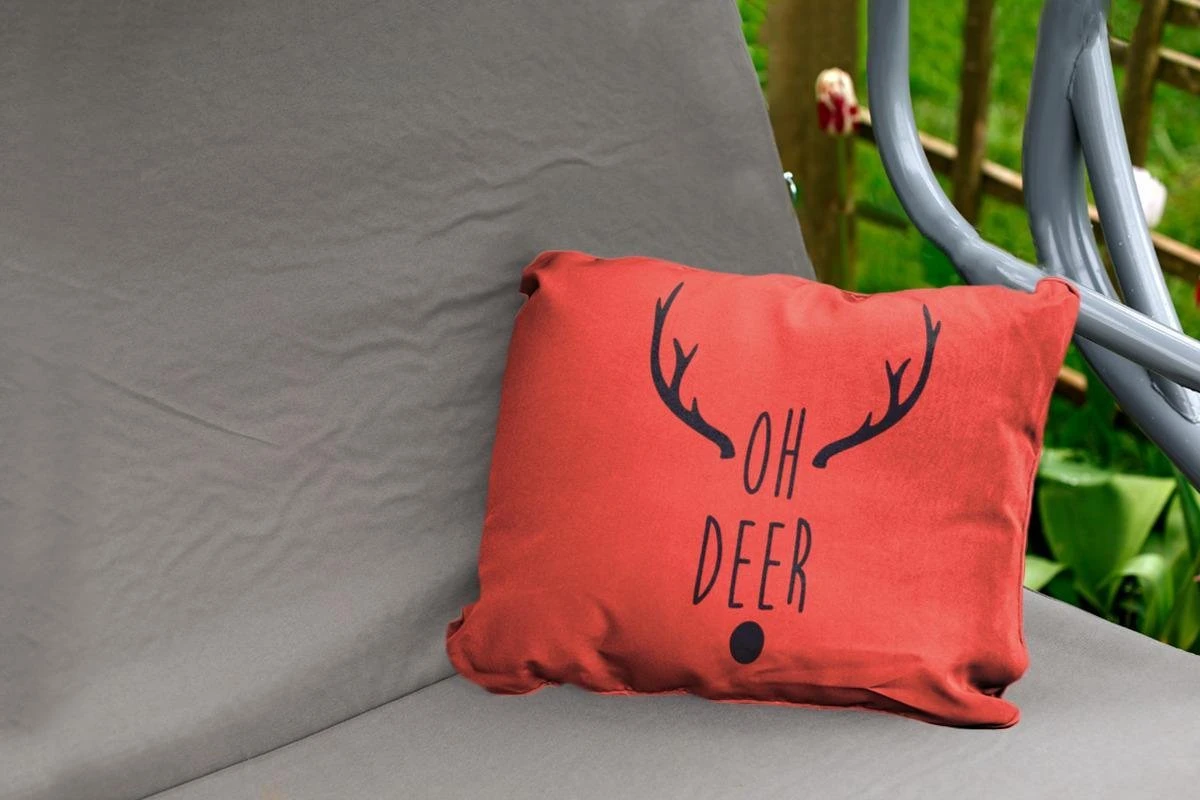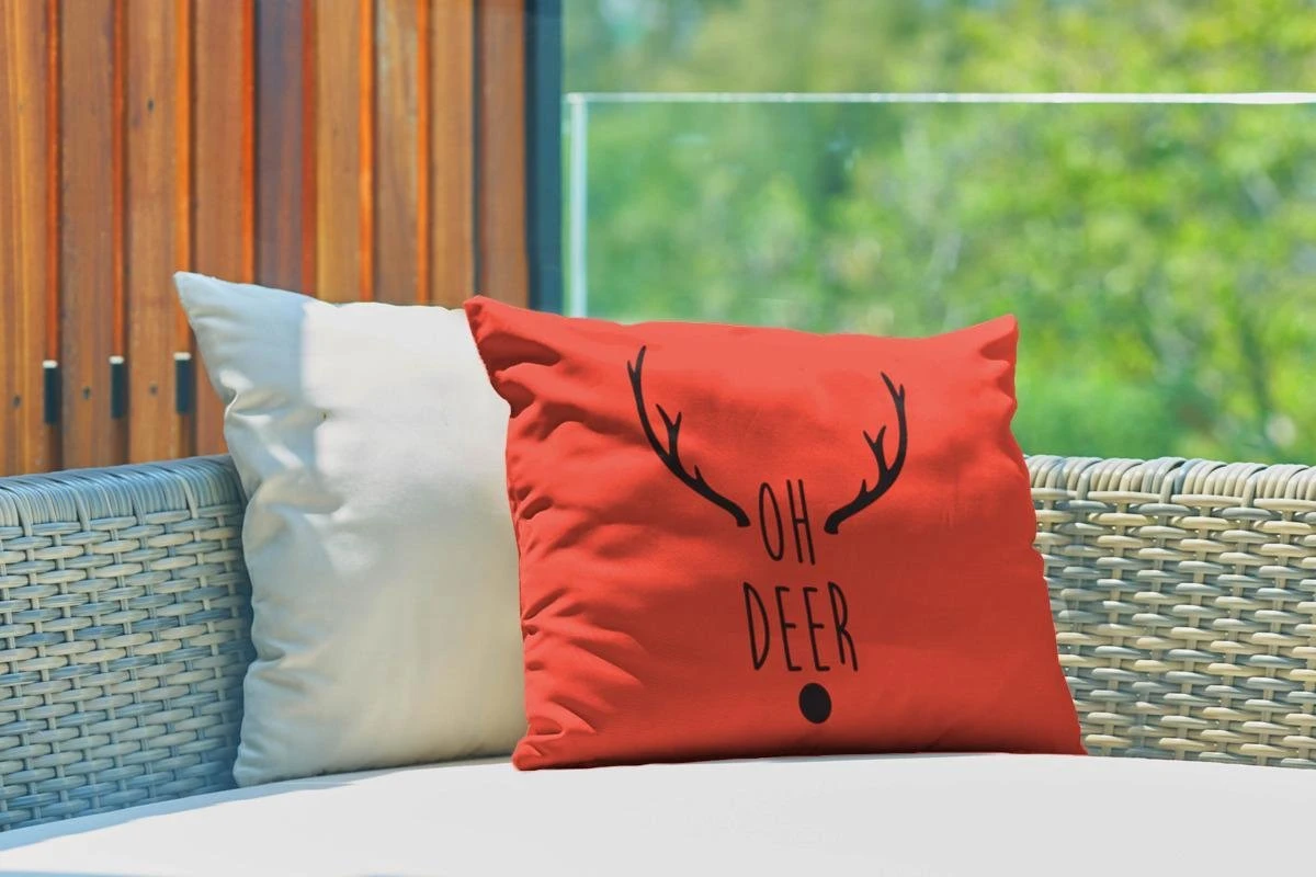 Coussins D’extérieur – Jardin – Citation De Noël Oh Cerf Sur Fond Rouge – 50×30 Cm