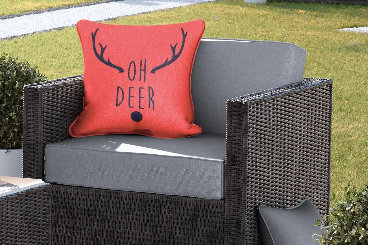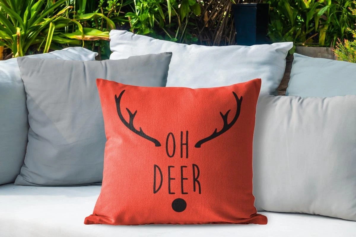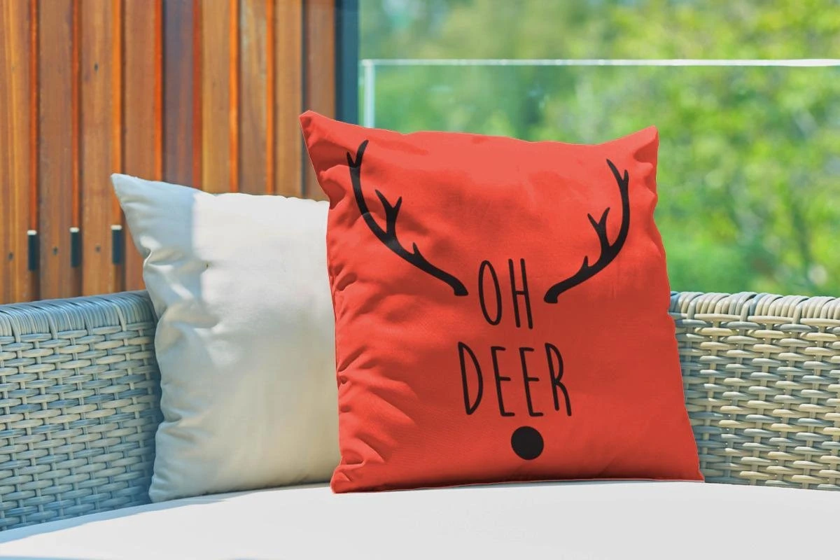 Coussins D’extérieur – Jardin – Citation De Noël Oh Cerf Sur Fond Rouge – 50×50 Cm