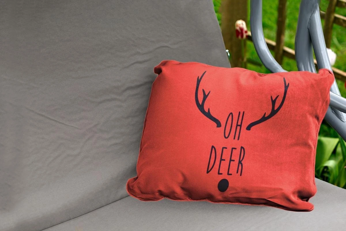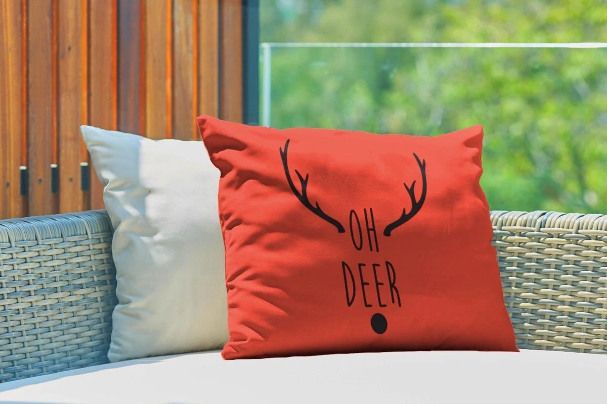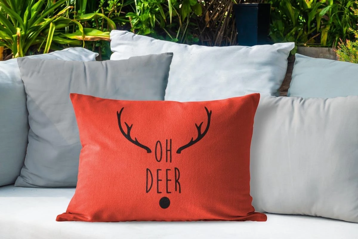 Coussins D’extérieur – Jardin – Citation De Noël Oh Cerf Sur Fond Rouge – 60×40 Cm