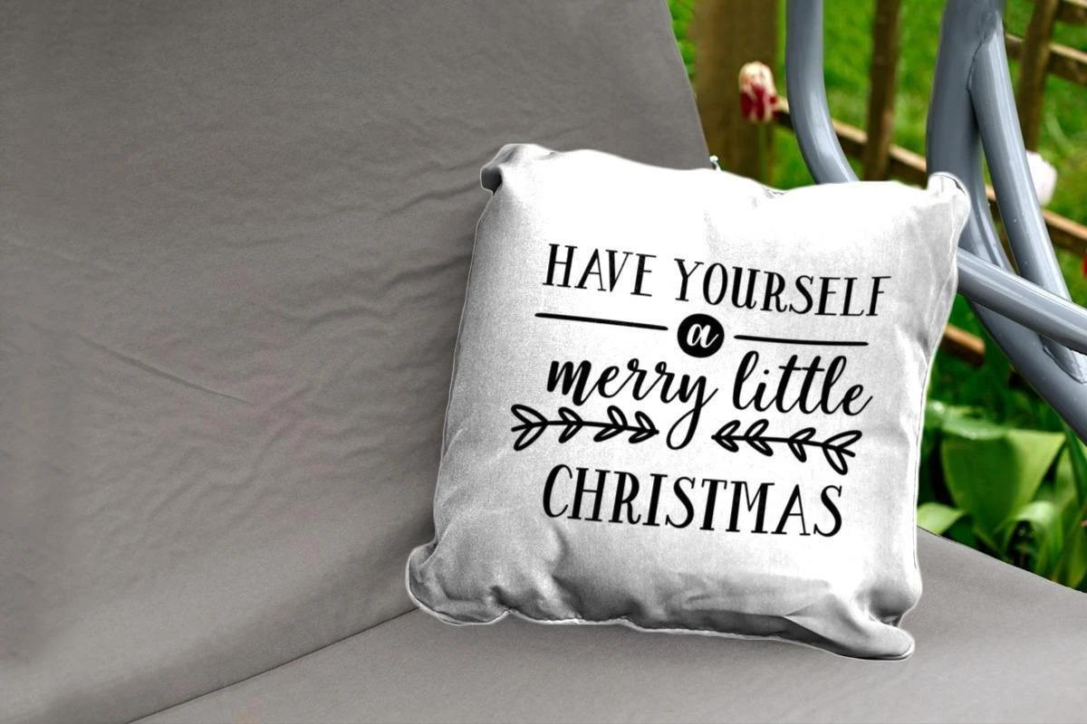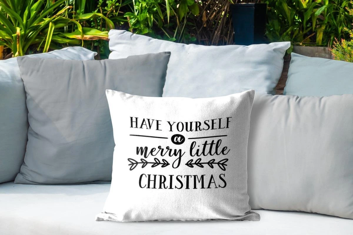 Coussins D’extérieur – Jardin – Citation De Noël Passez Un Joyeux Petit Noël Avec Un Fond Blanc – 45×45 Cm