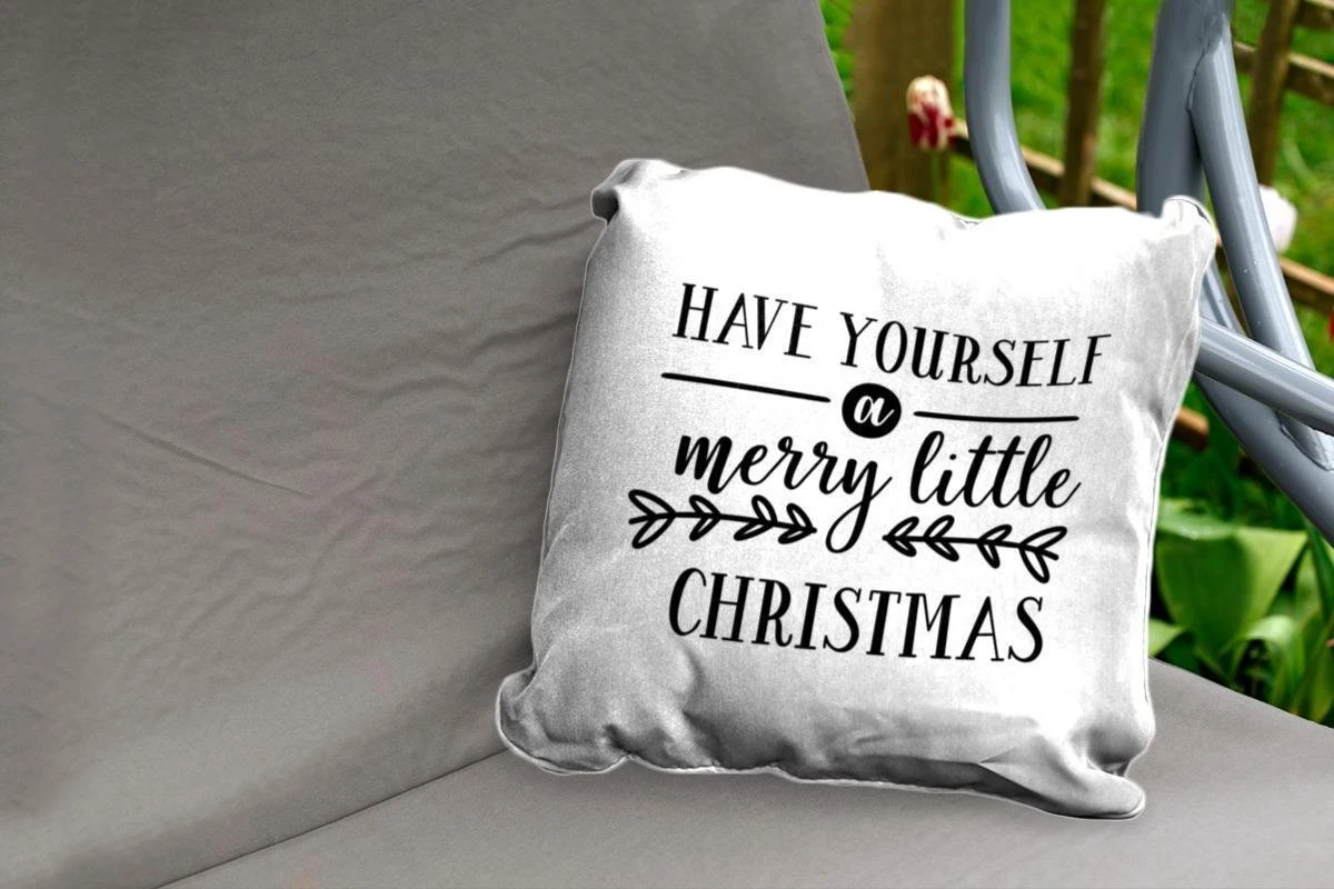 Coussins D’extérieur – Jardin – Citation De Noël Passez Un Joyeux Petit Noël Avec Un Fond Blanc – 50×50 Cm