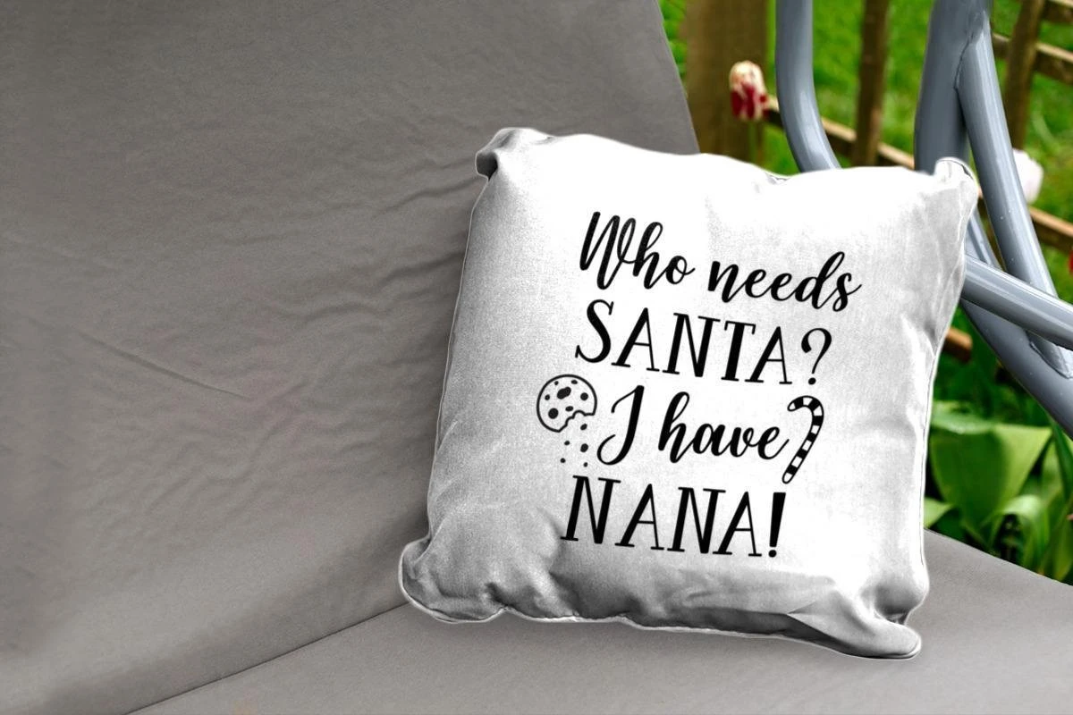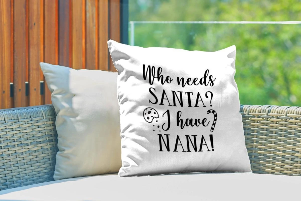 Coussins D’extérieur – Jardin – Citation De Noël Qui A Besoin Du Père Noël ? J’ai Nana! Sur Fond Blanc – 50×50 Cm